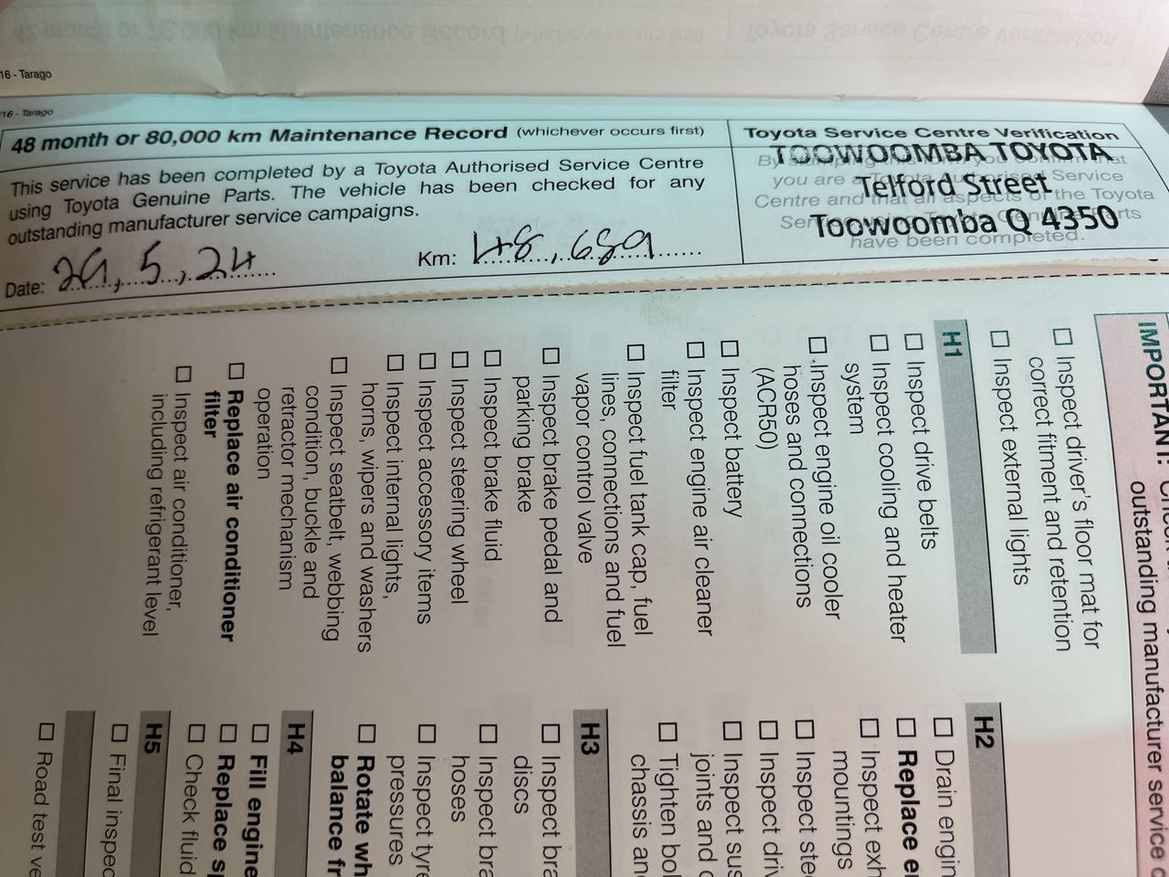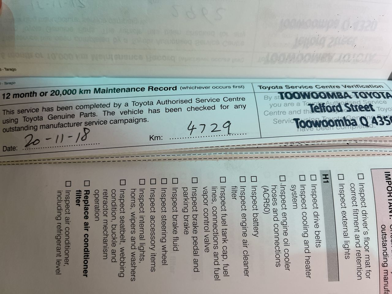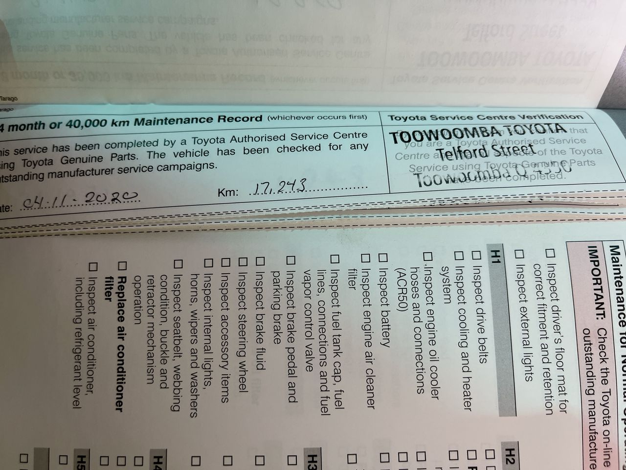 • Dents or marks on body consistent with age and kilometres.
