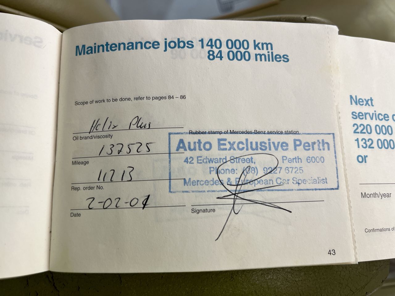 • Service History: Partial