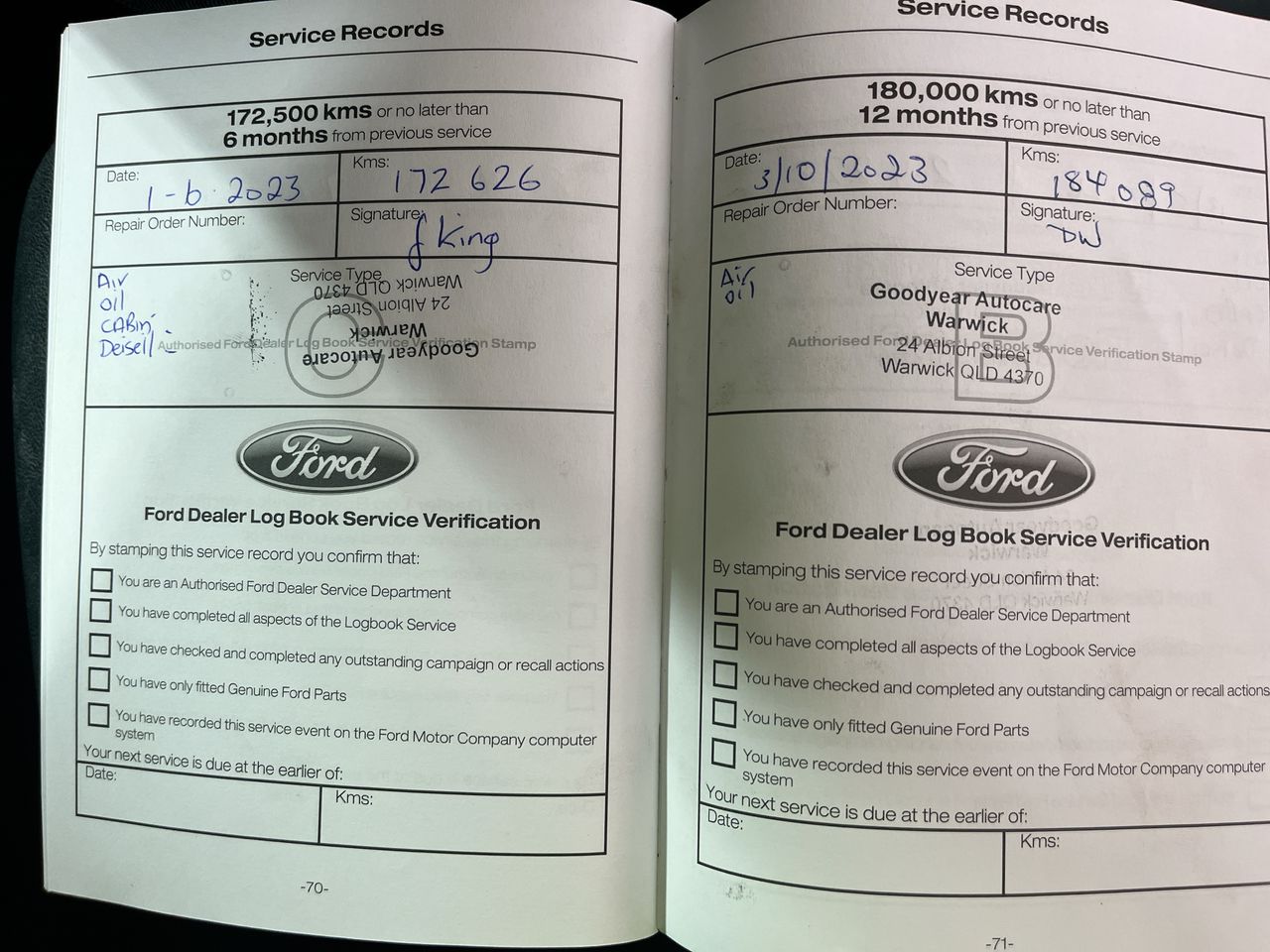 • Dents or marks on body consistent with age and kilometres.