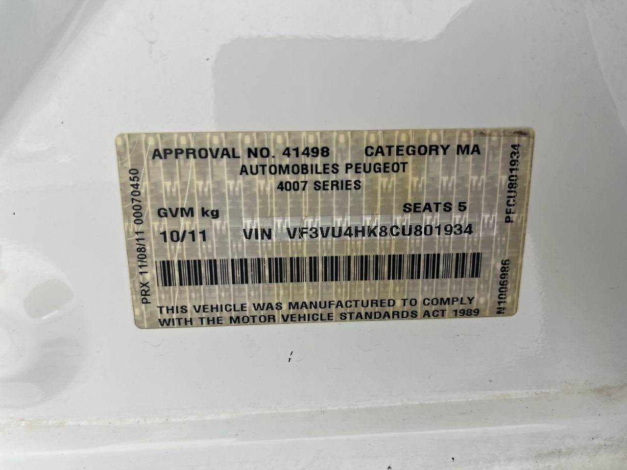 | Part of Sale | 2011 Peugeot 4007 Automatic SUV | ||||||||||||||
