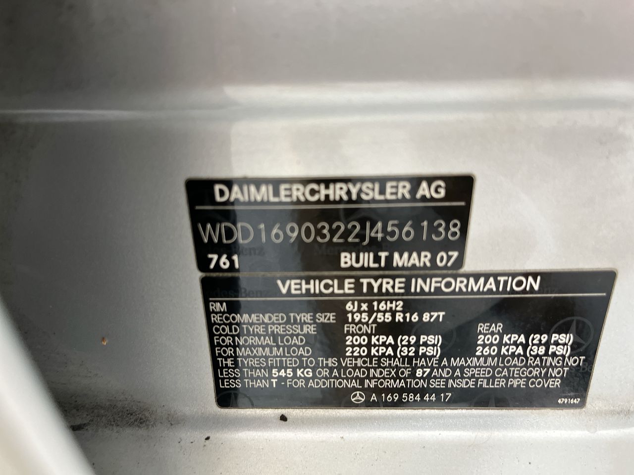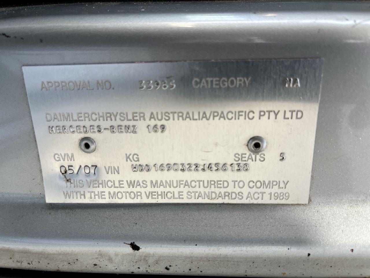 2007 Mercedes Benz A170 Classic W169 CVT Hatchback