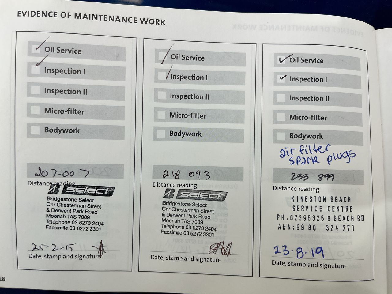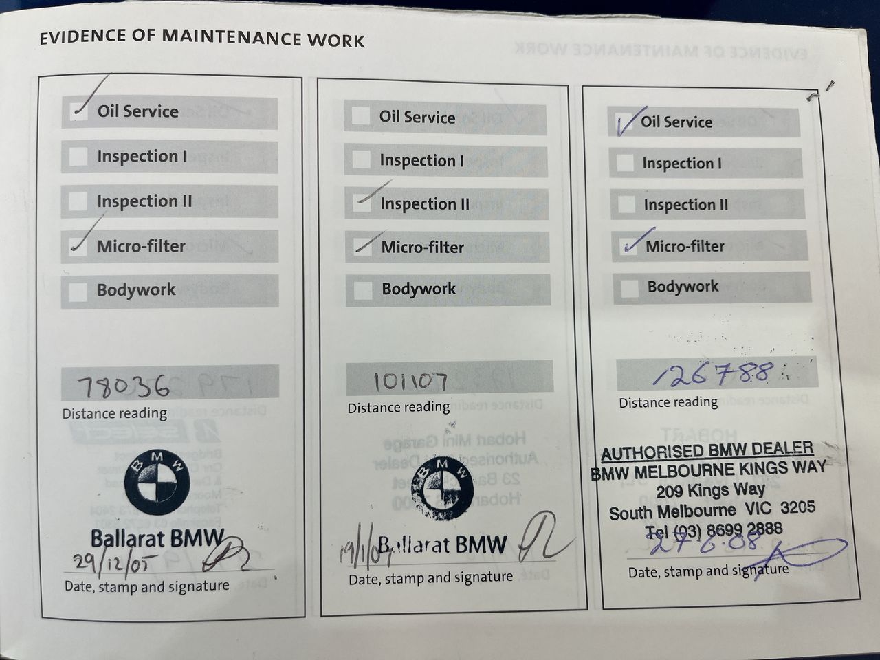 • Dents or marks on body consistent with age and kilometres.