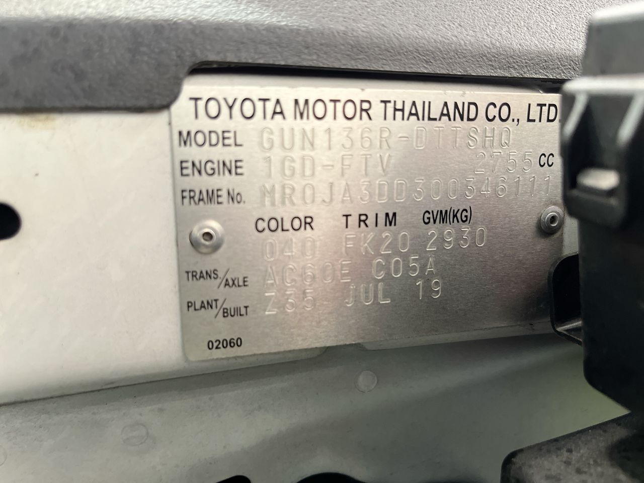 (SN:MR0JA3DD300346111) (131460-1710)