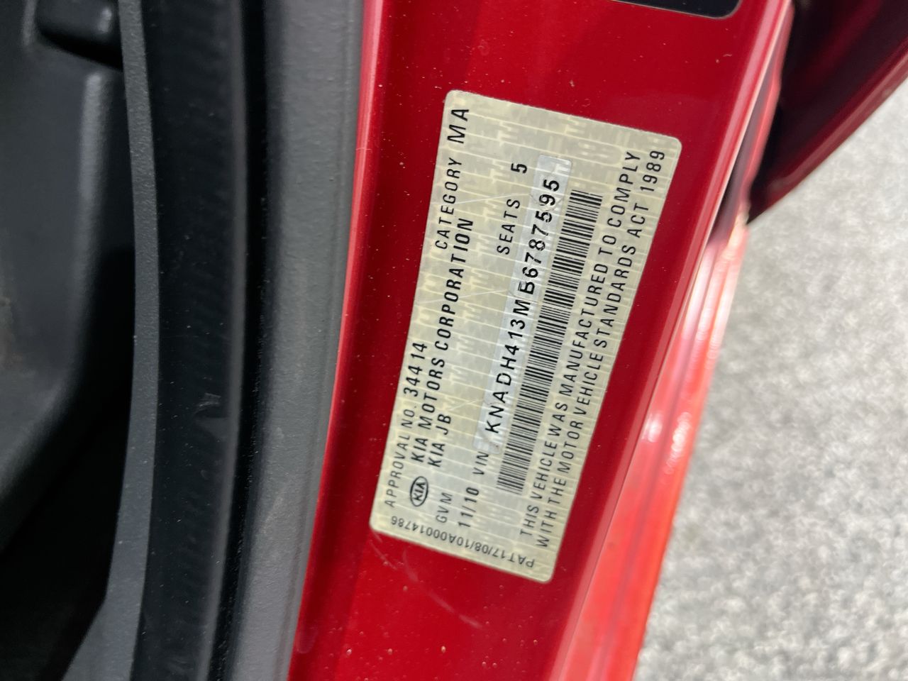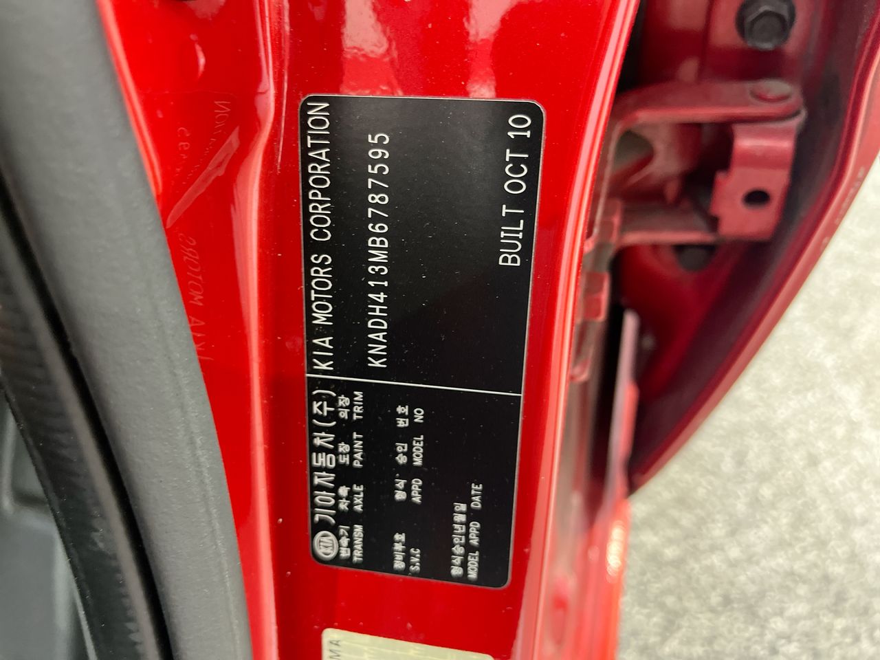 (SN:KNADH413MB6787595) (134335-2)