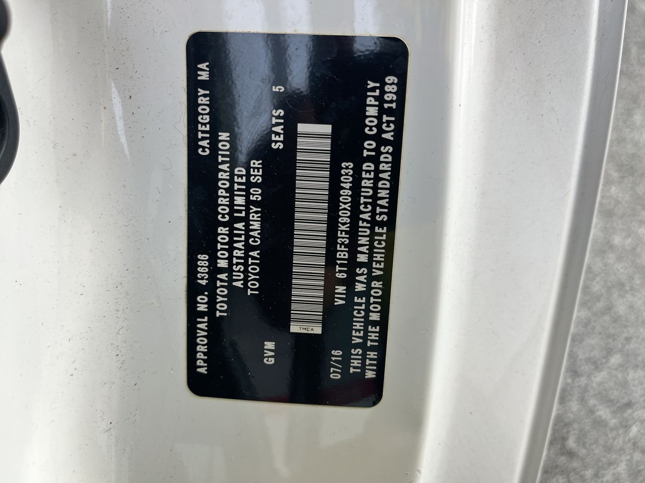 (SN:6T1BF3FK90X094033) (130135-16)