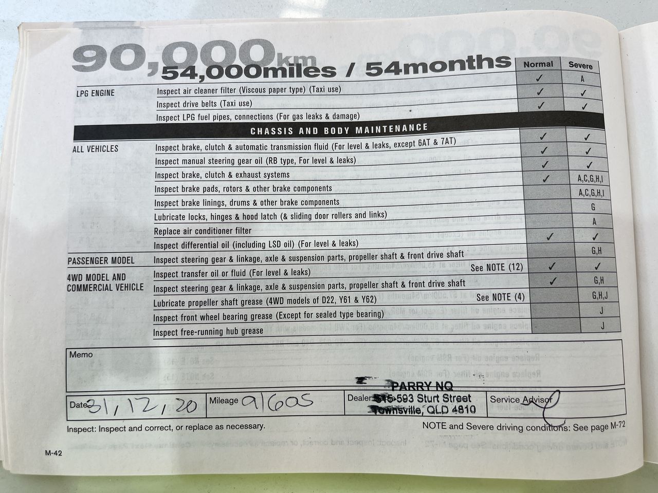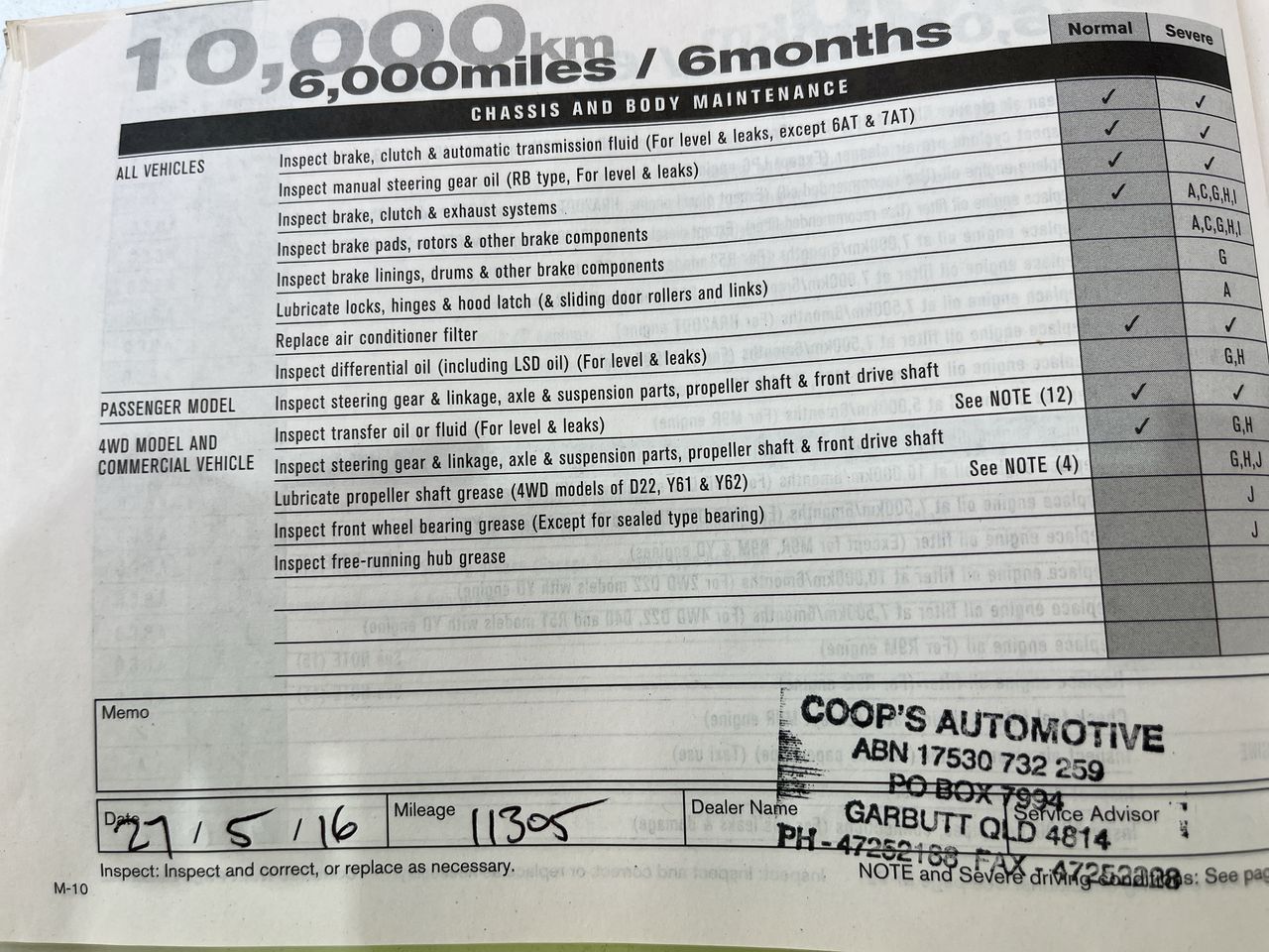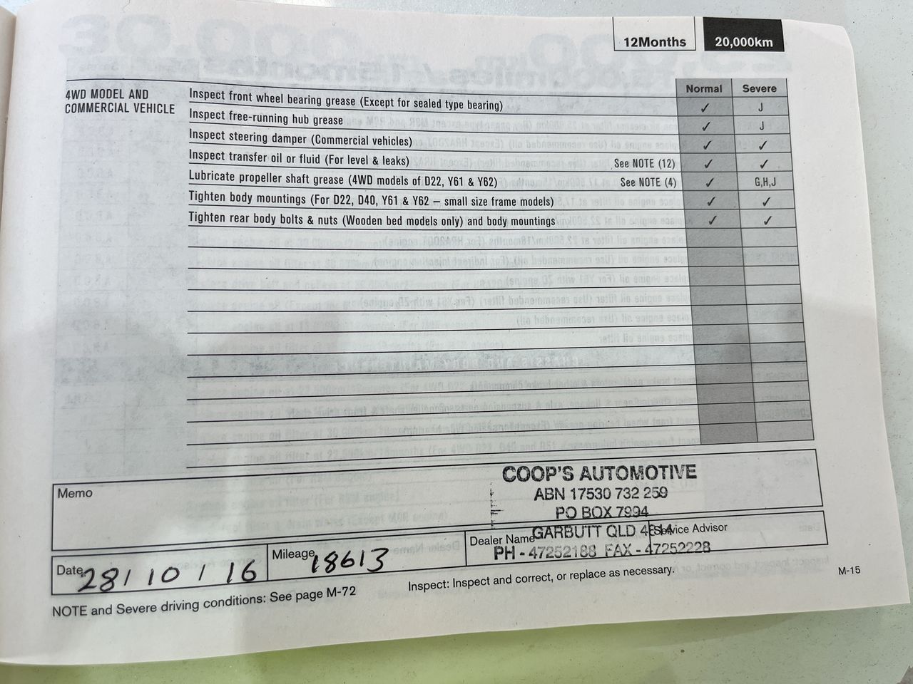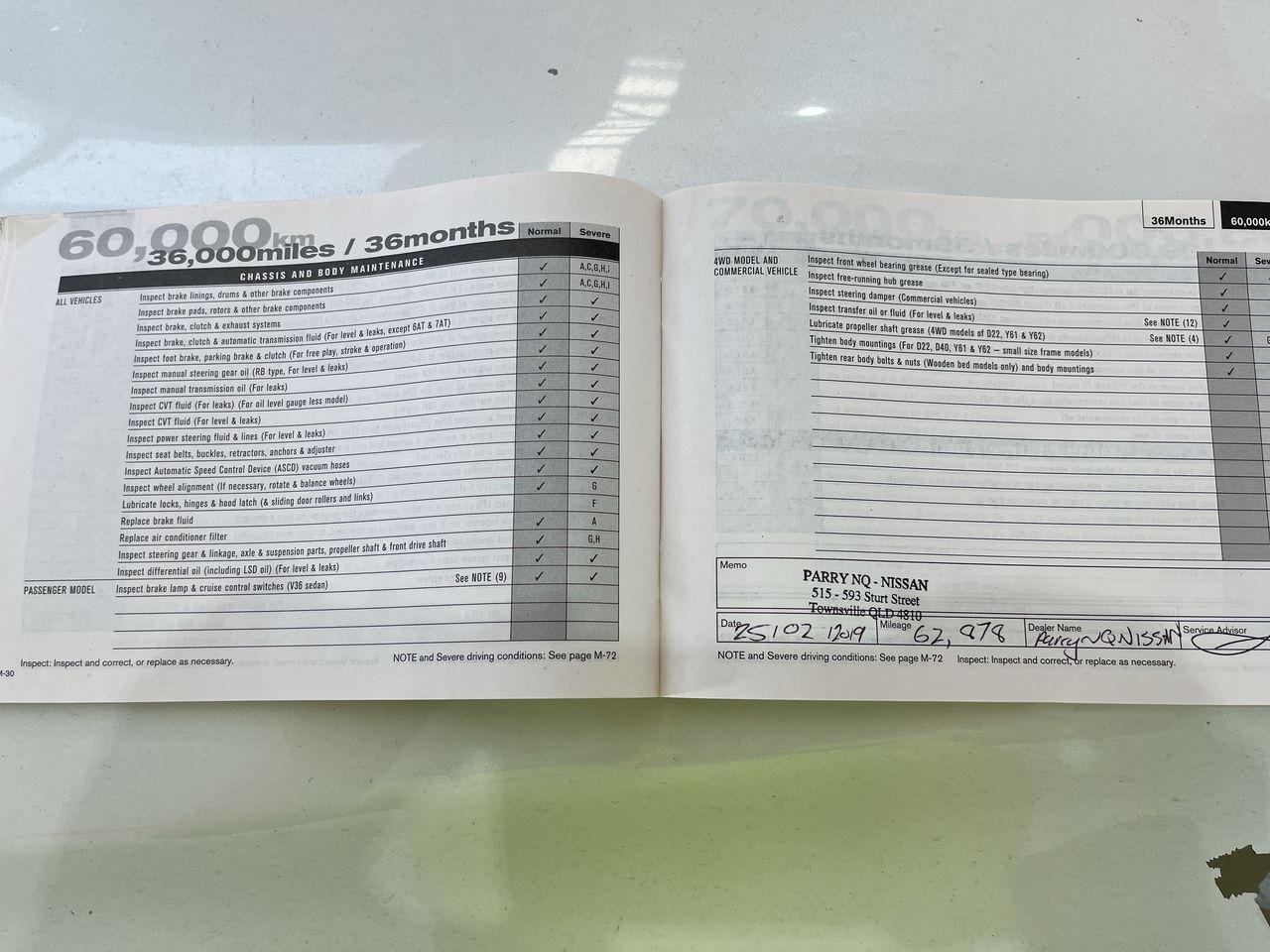 • Dents or marks on body consistent with age and kilometres.