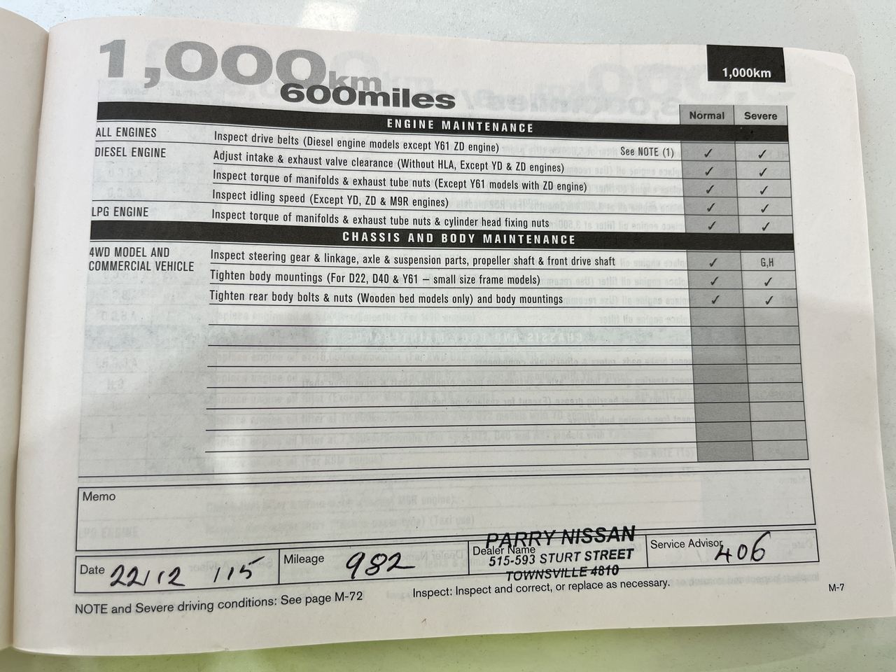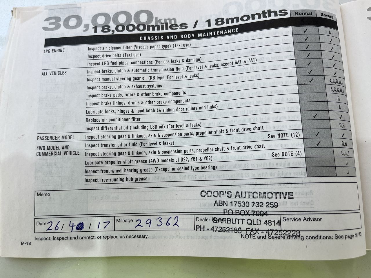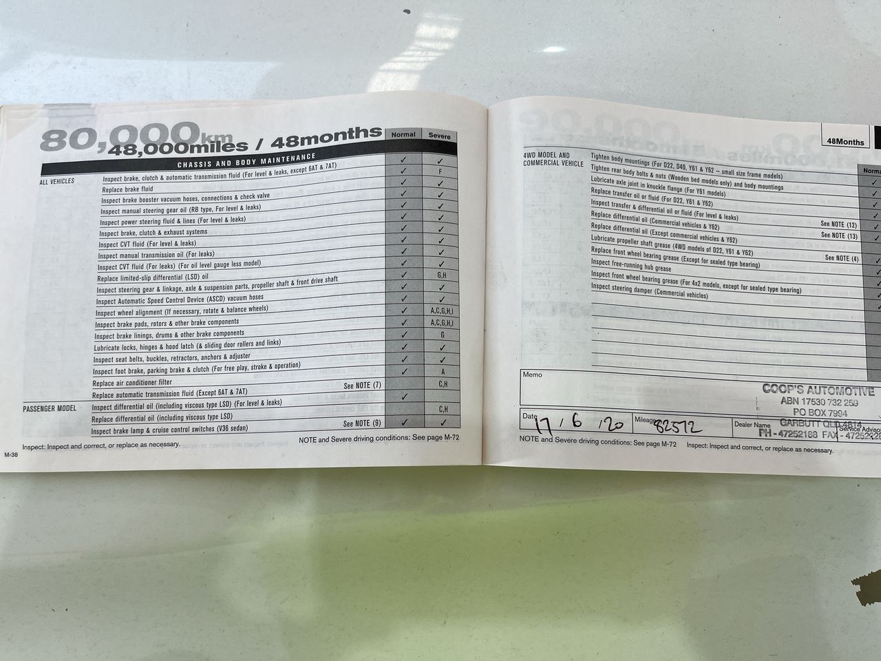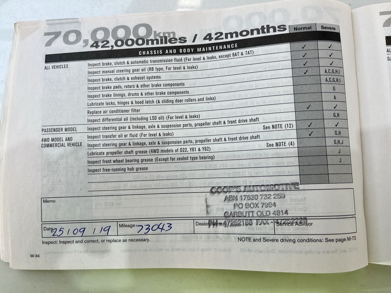 • Dents or marks on body consistent with age and kilometres.