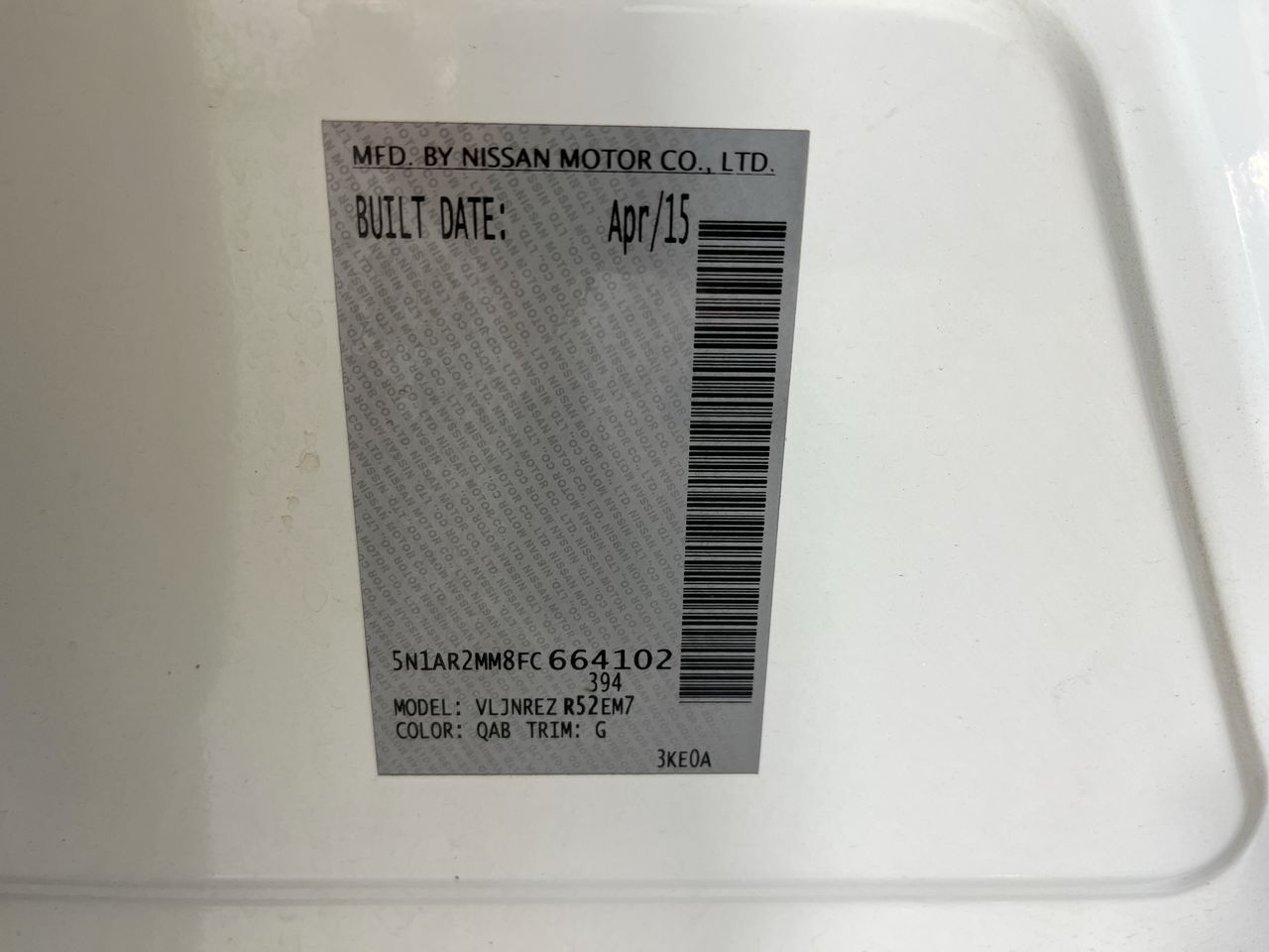 • VIN: 5N1AR2MM8FC664102