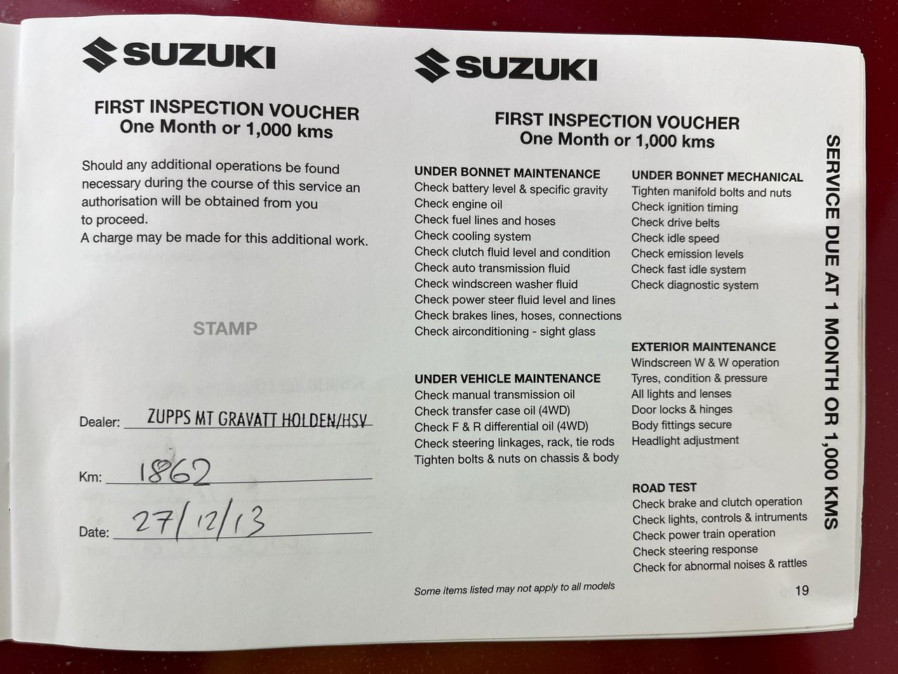 • Dents or marks on body consistent with age and kilometres.
