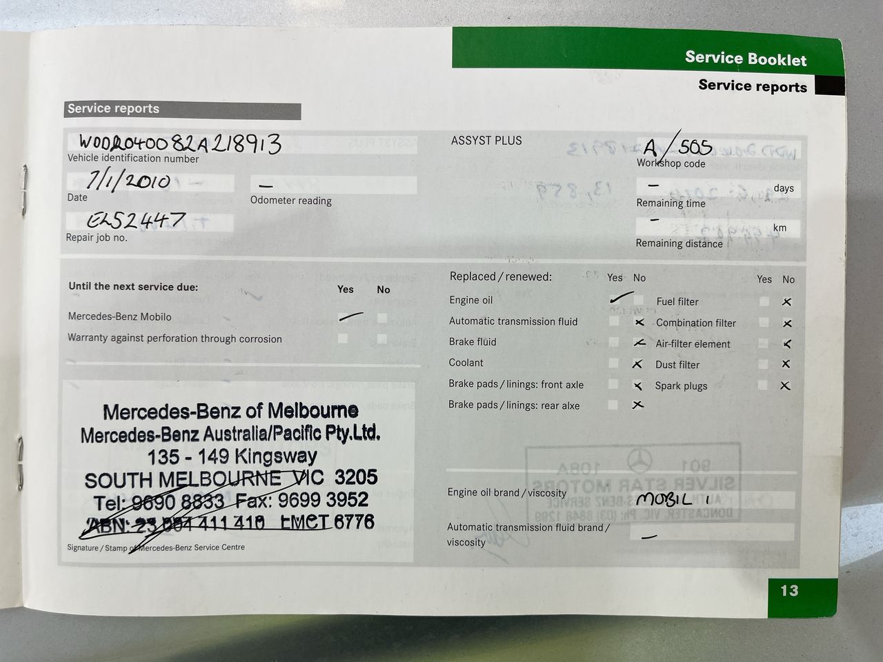 • VIN: WDD2040082A218913