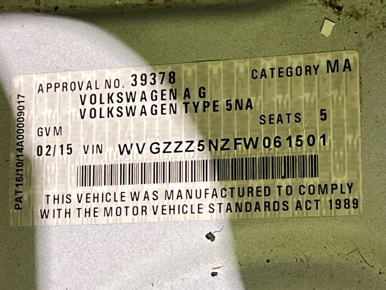 (SN:WVGZZZ5NZFW061501) (132718-152)