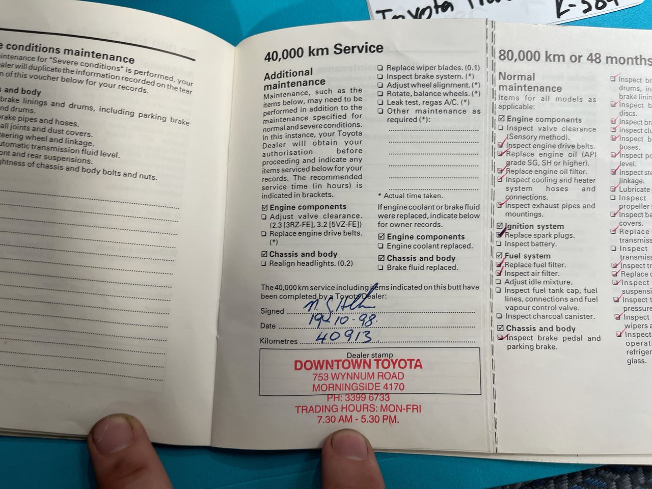 • Dents or marks on body consistent with age and kilometres.