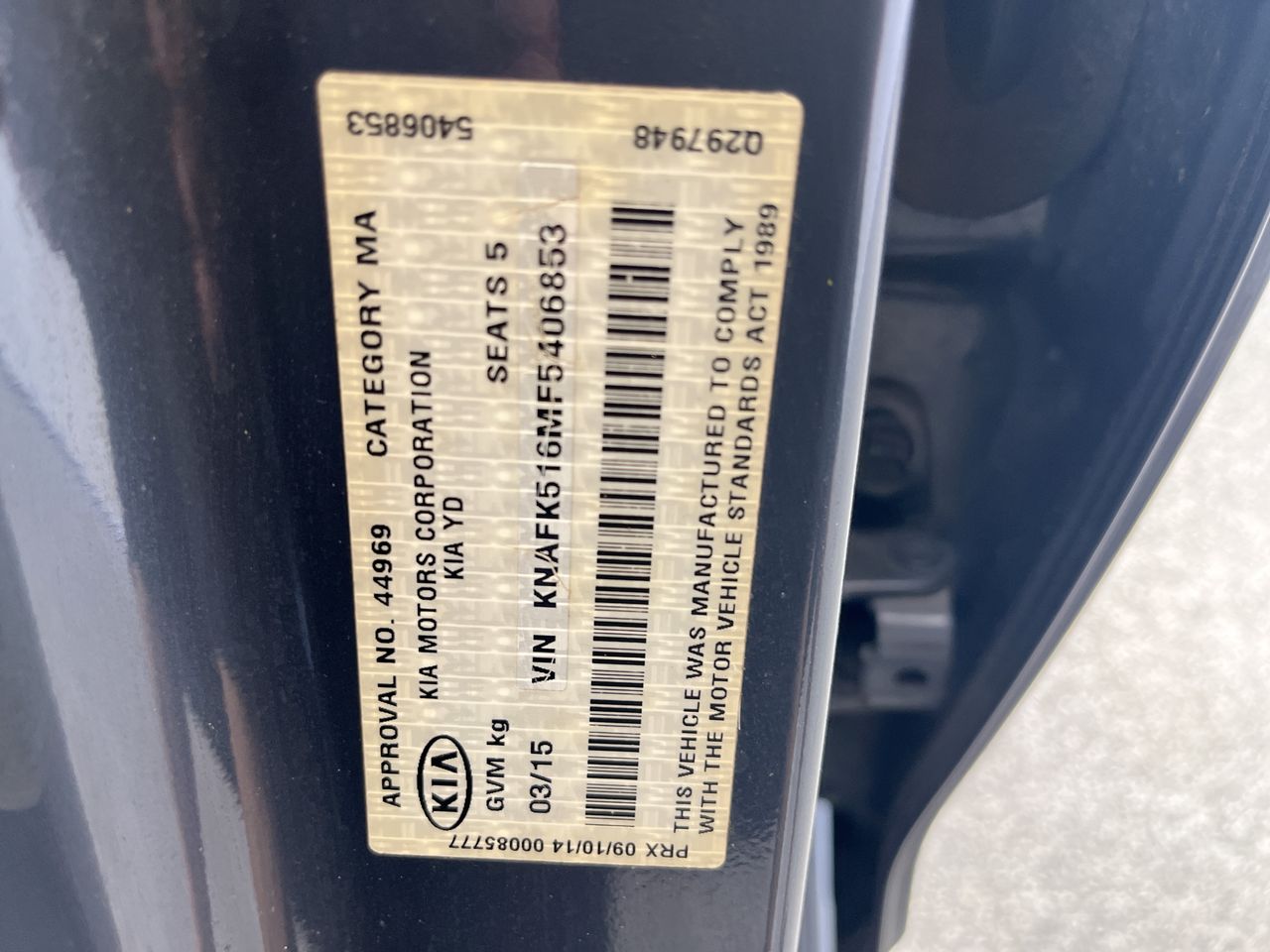 • VIN: KNAFK516MF5406853