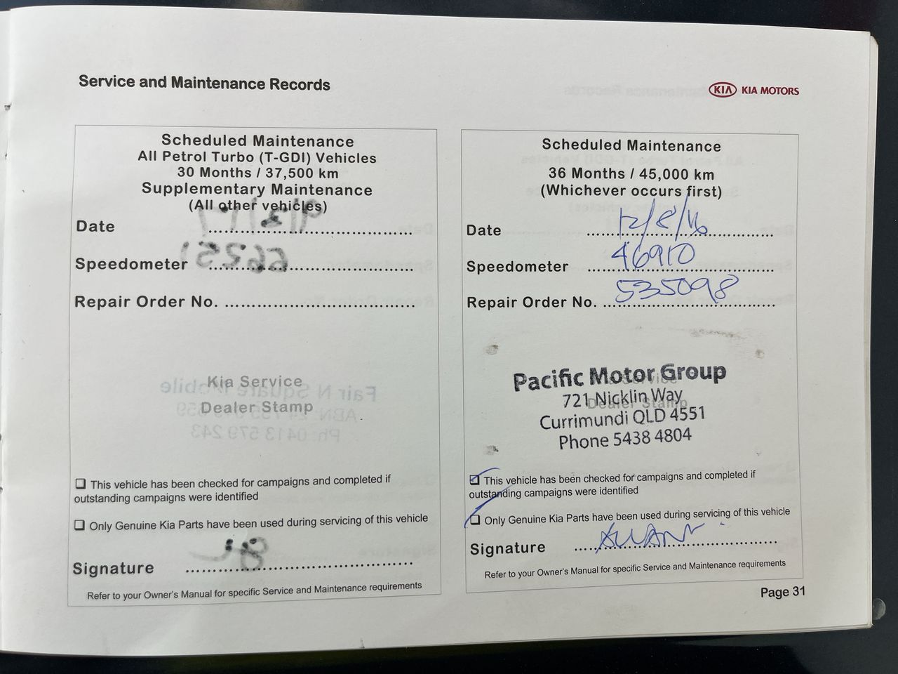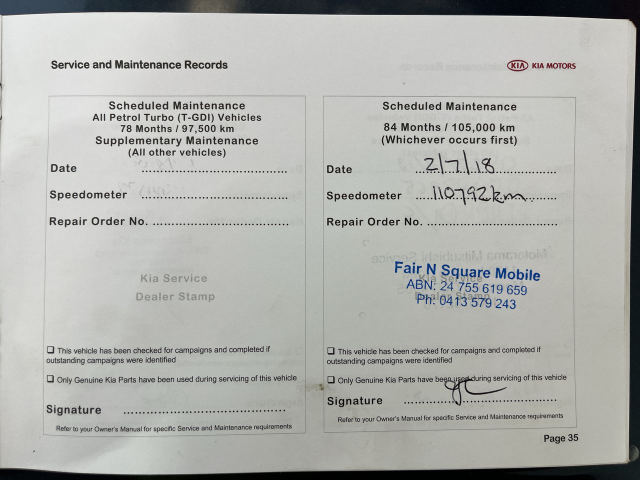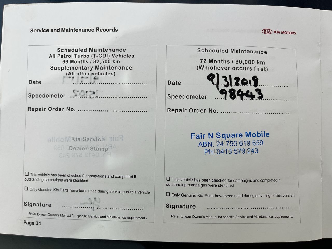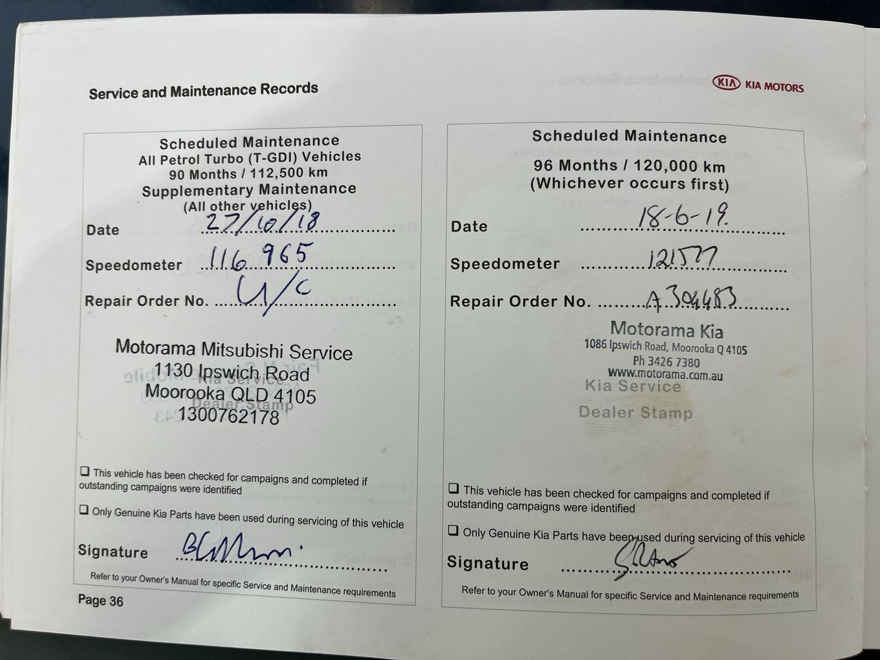• Dents or marks on body consistent with age and kilometres.