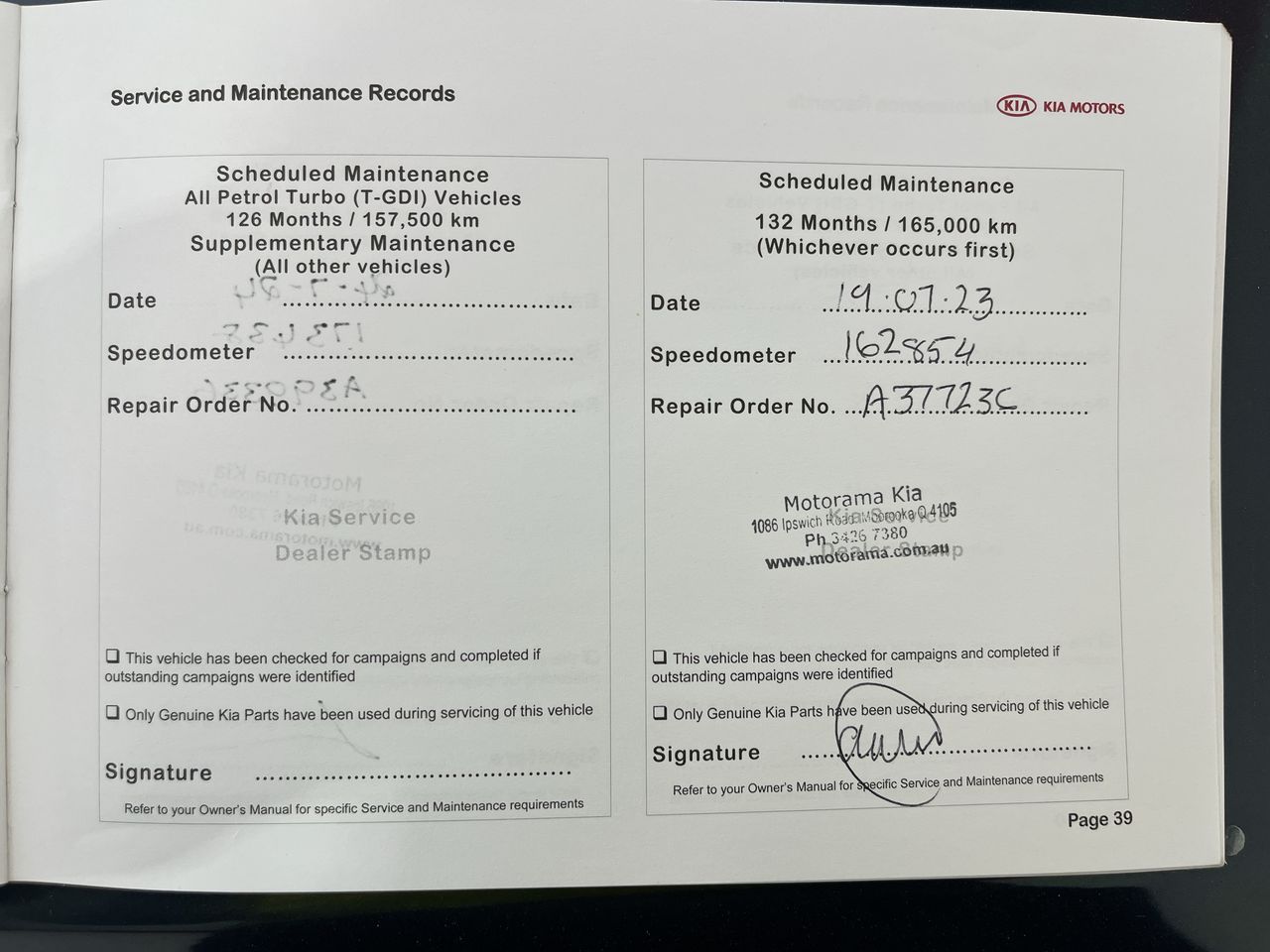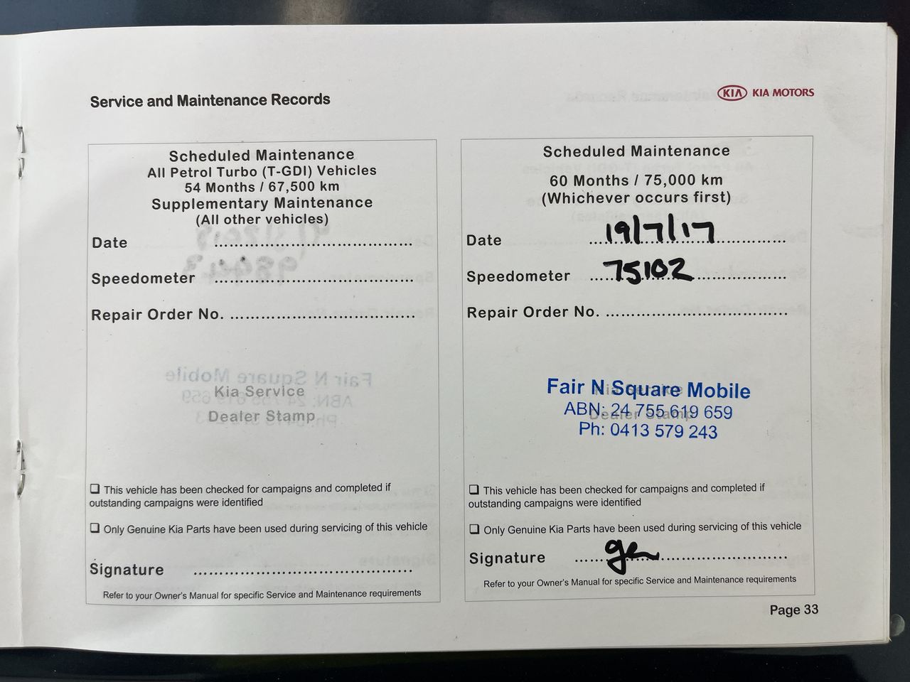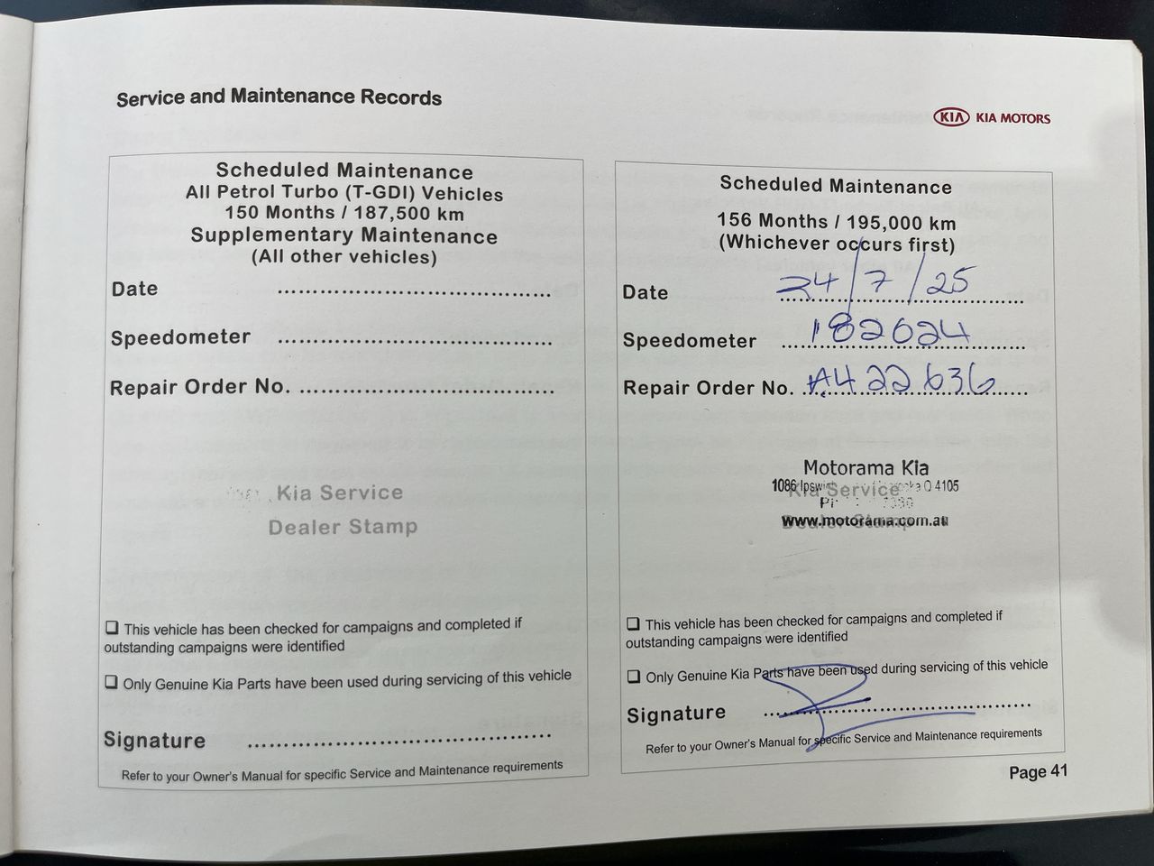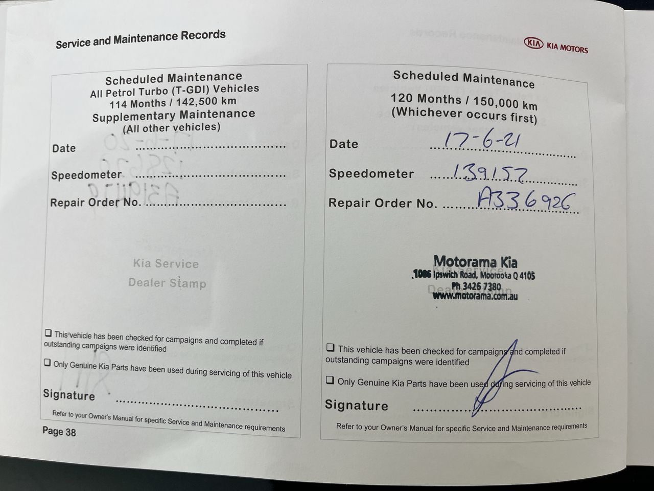 • Dents or marks on body consistent with age and kilometres.