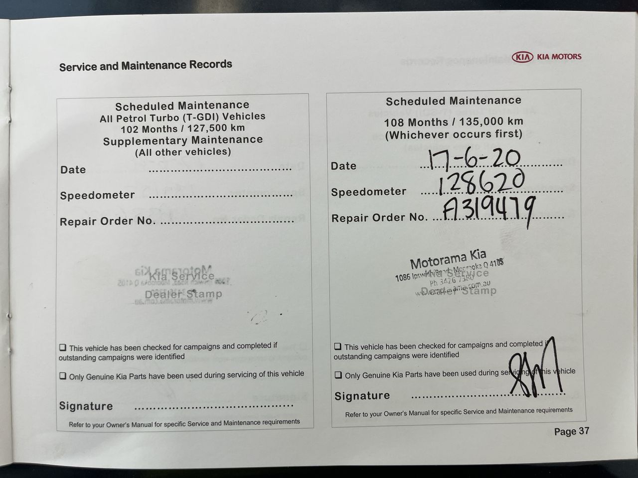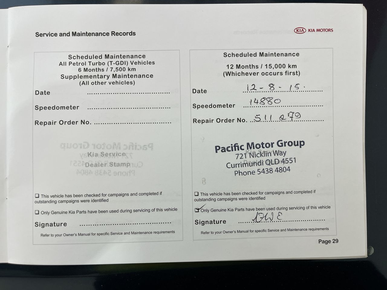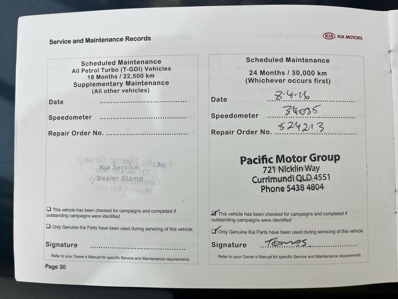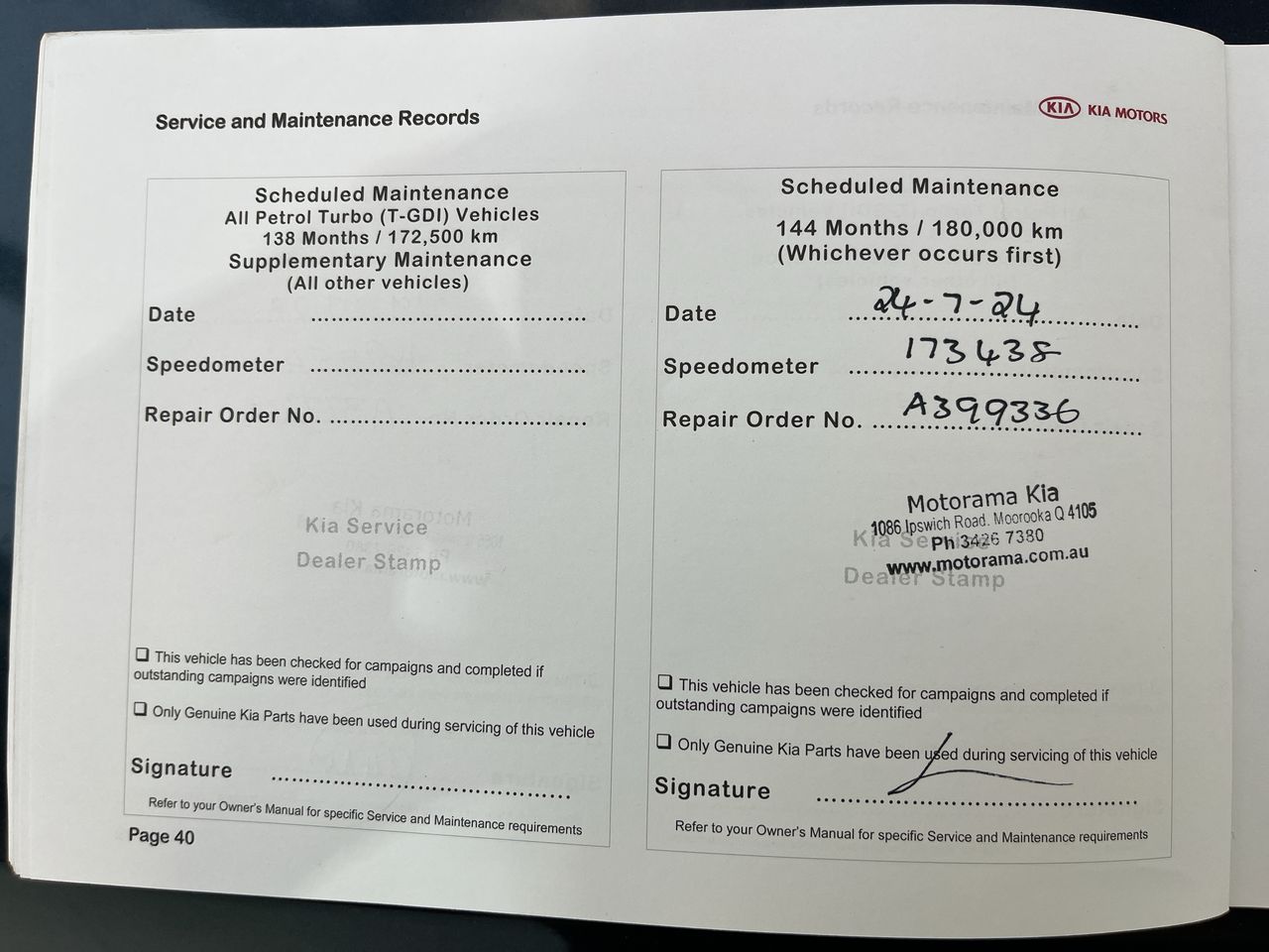 • Dents or marks on body consistent with age and kilometres.