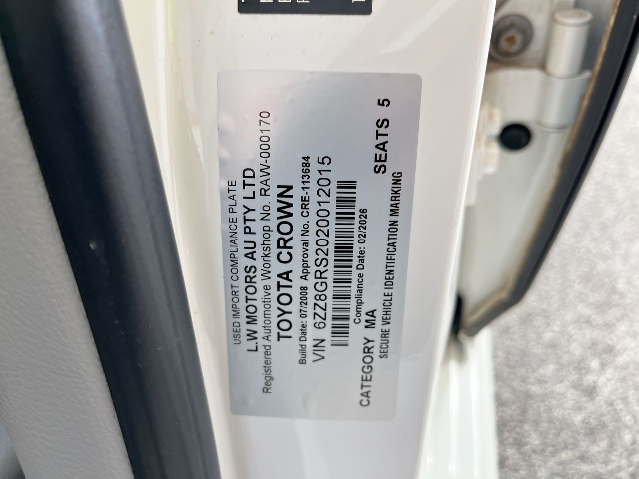 Part of Sale 2008 Toyota Crown Automatic Sedan