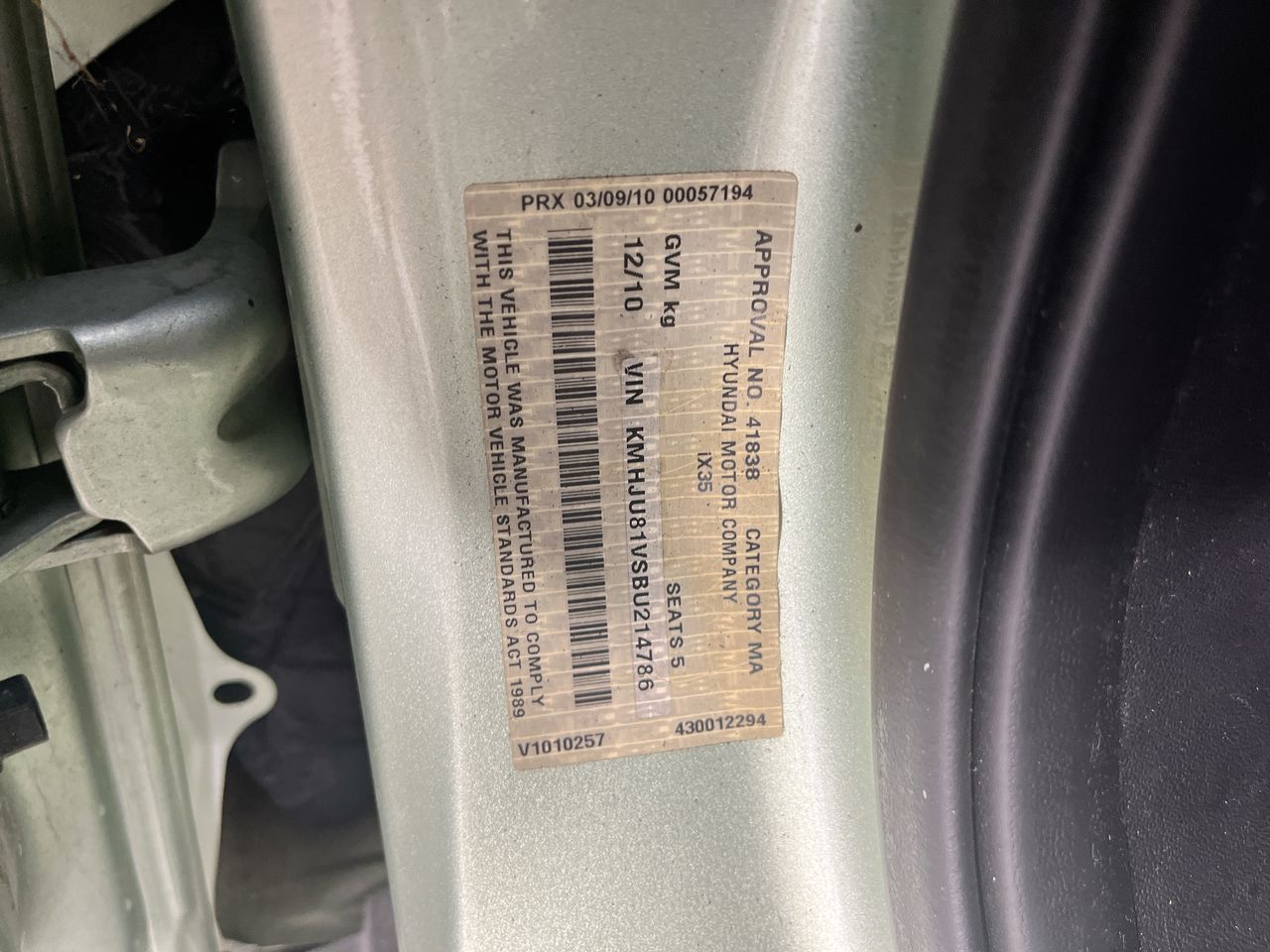 • VIN: KMHJU81VSBU214786