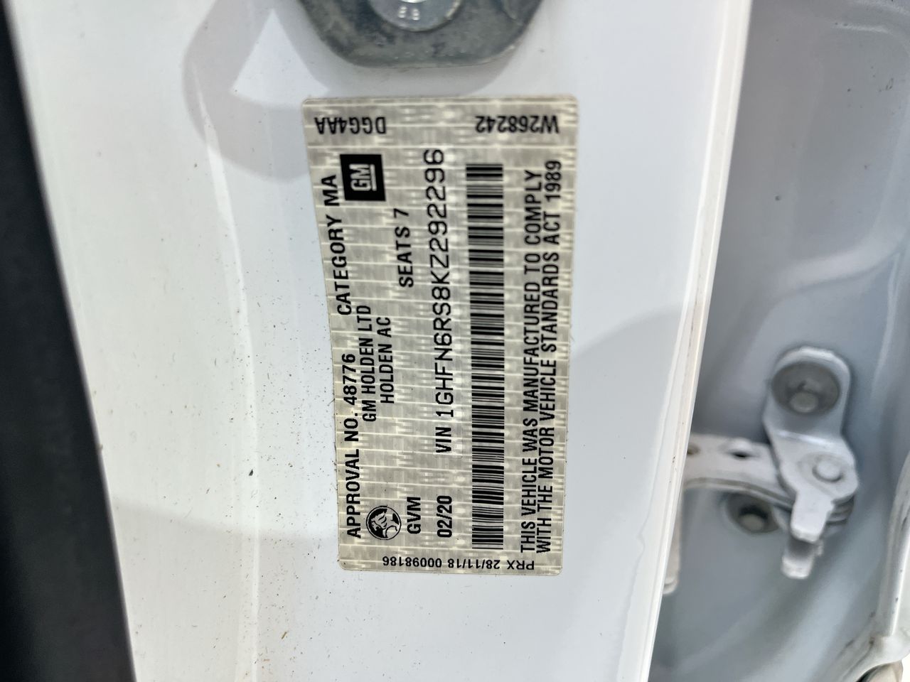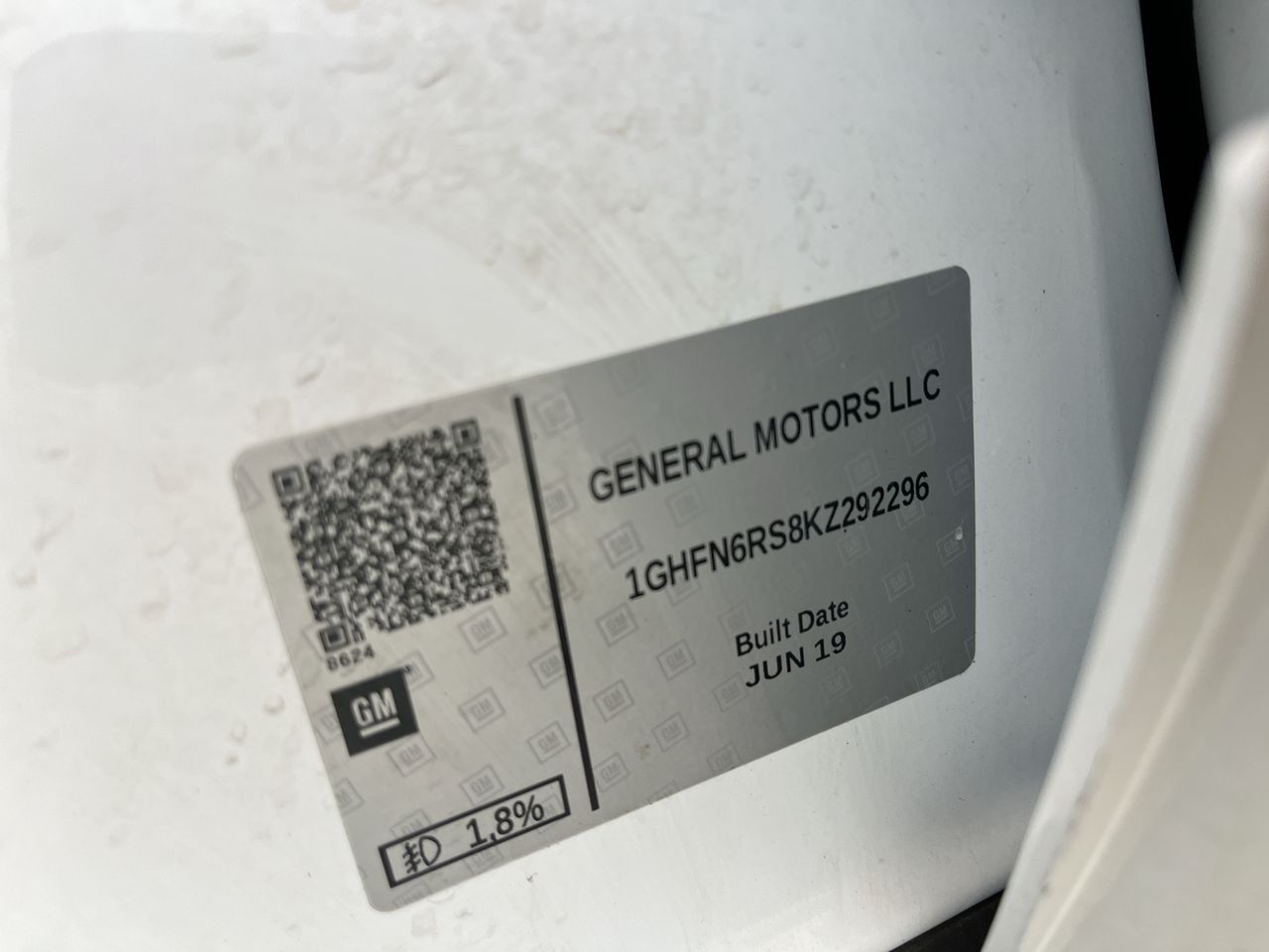 • VIN: 1GHFN6RS8KZ292296