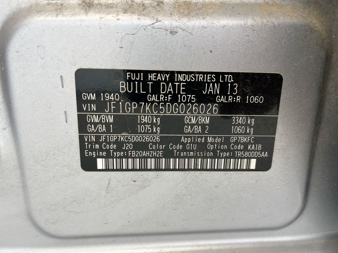 • VIN: JF1GP7KC5DG026026
