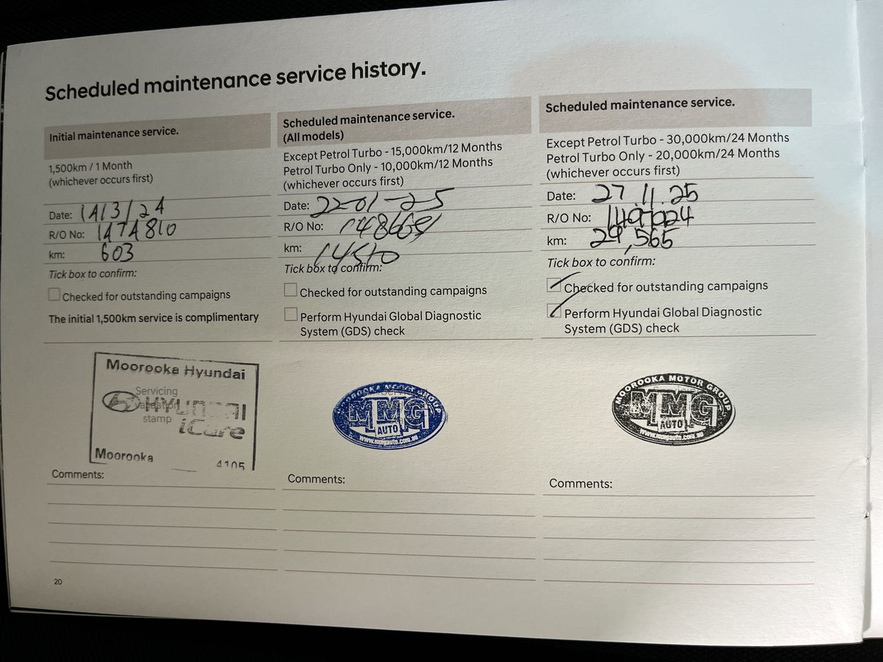 • Dents or marks on body consistent with age and kilometres.