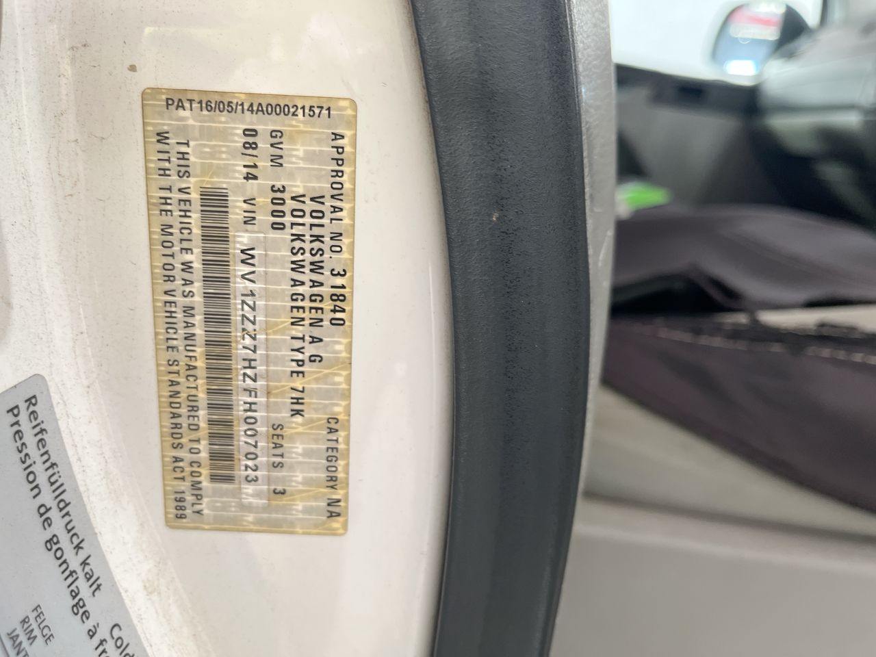 • VIN: WV1ZZZ7HZFH007023