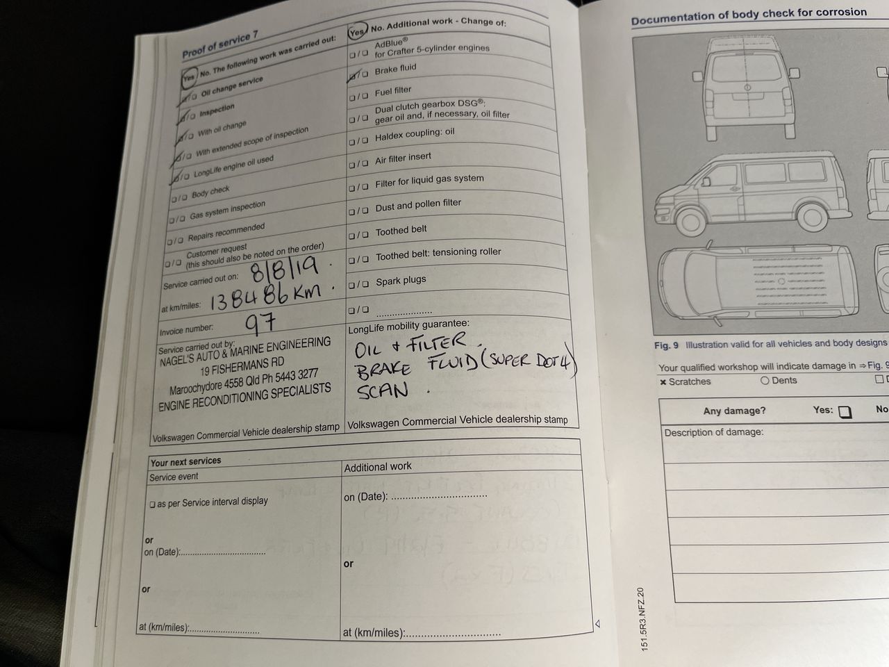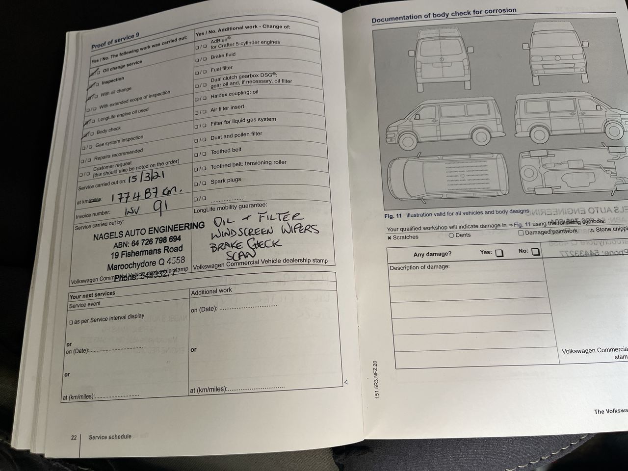 • Dents or marks on body consistent with age and kilometres.