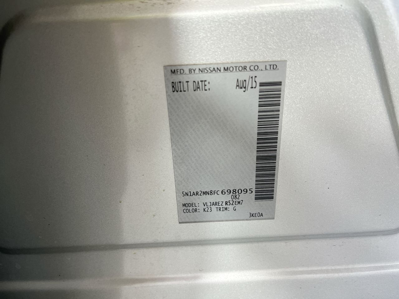 • VIN: 5N1AR2MN8FC698095