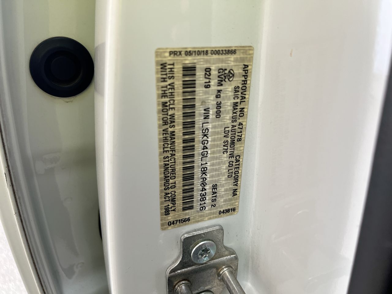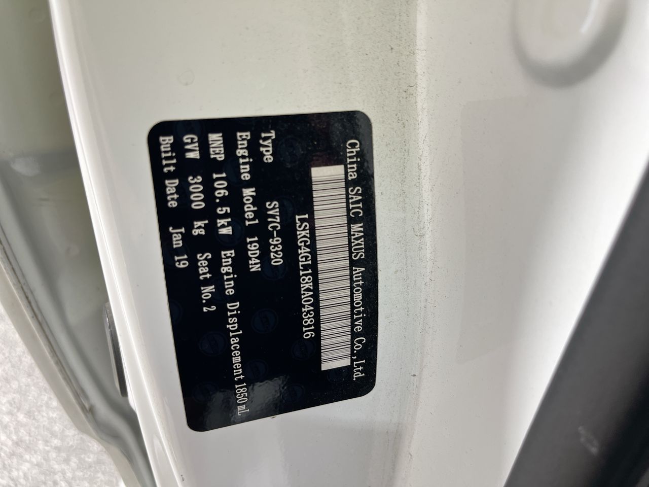 • VIN: LSKG4GL18KA043816