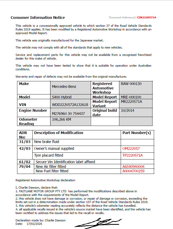• Registration Expiry Date: Sold Unregistered, Without Plates