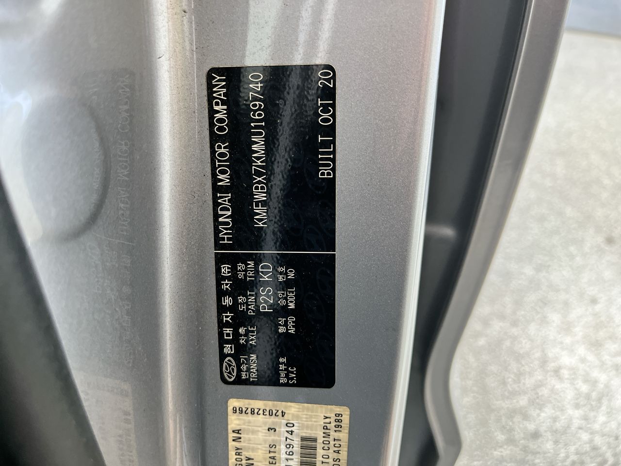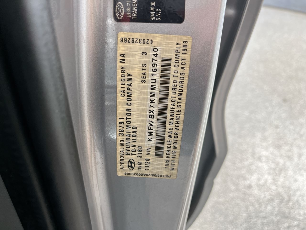• VIN: KMFWBX7KMMU169740