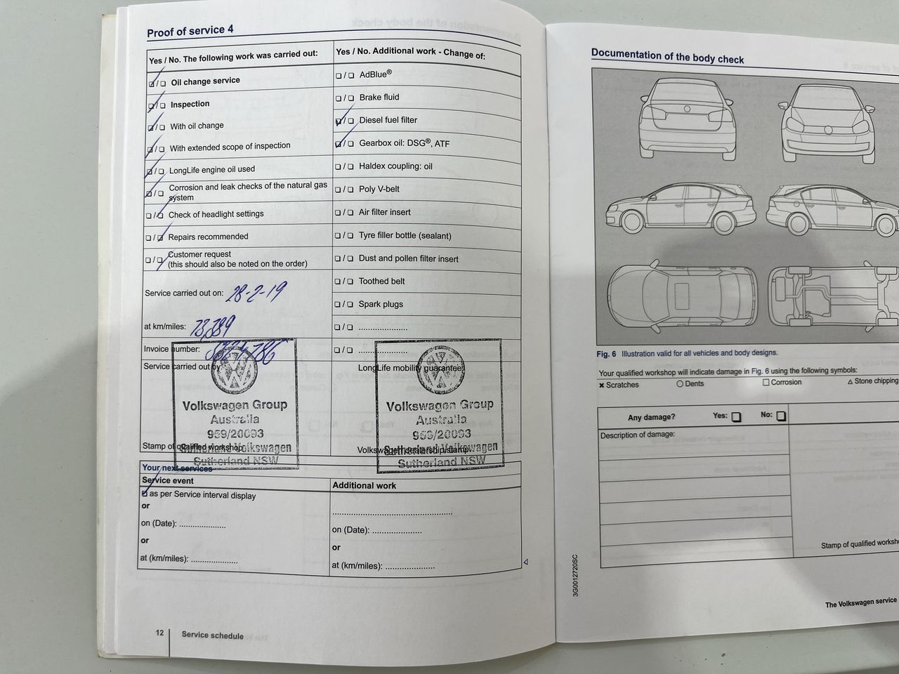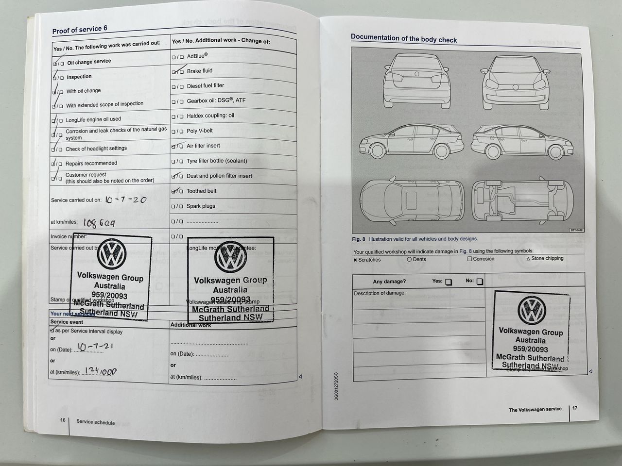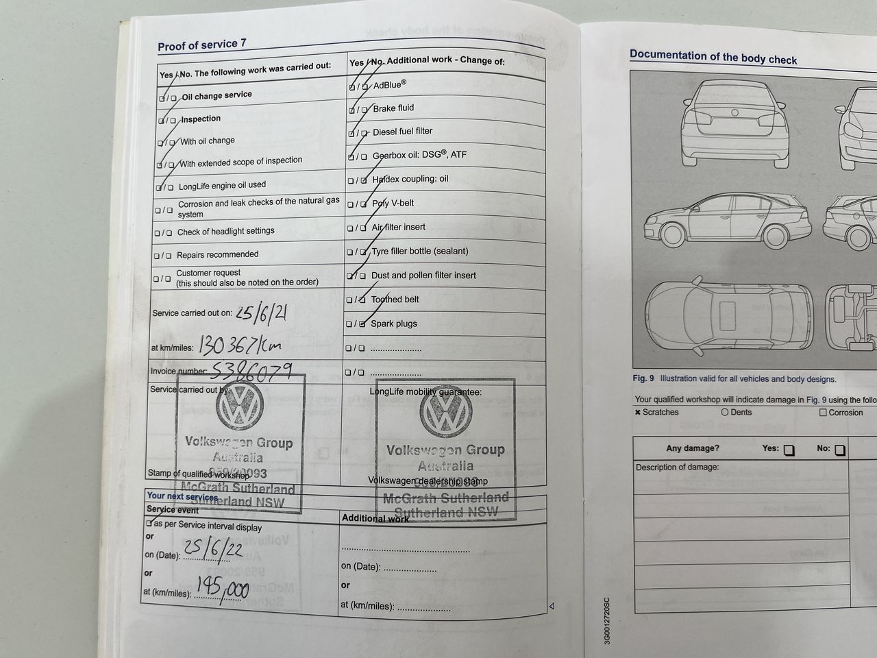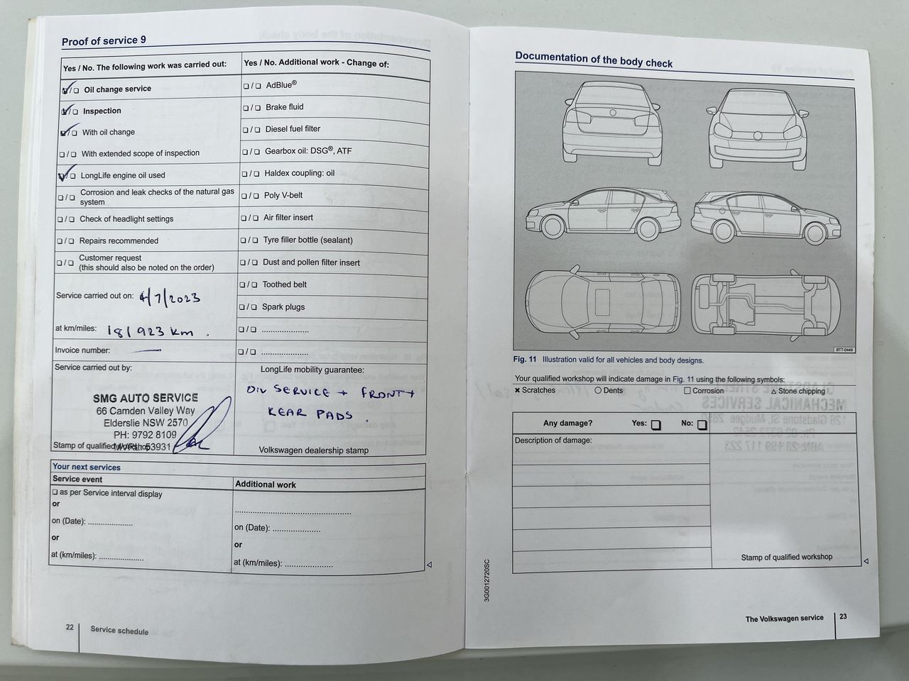 • Dents or marks on body consistent with age and kilometres.