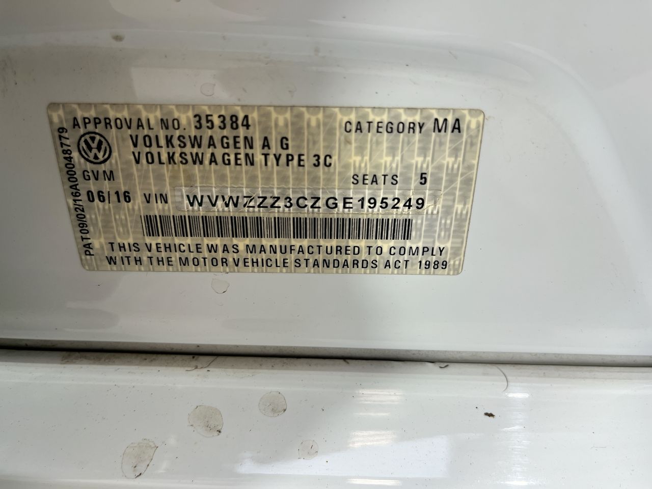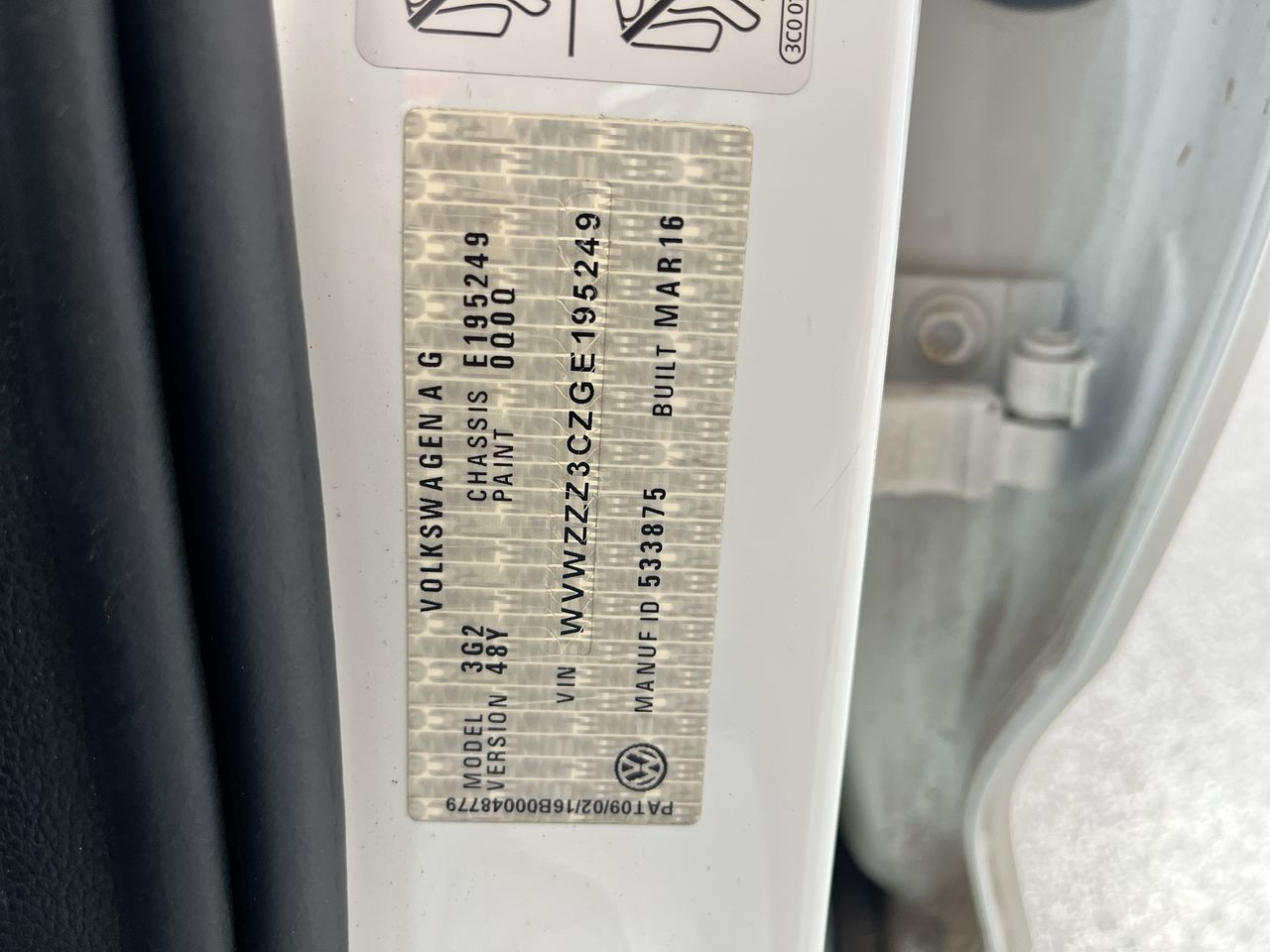 • VIN: WVWZZZ3CZGE195249