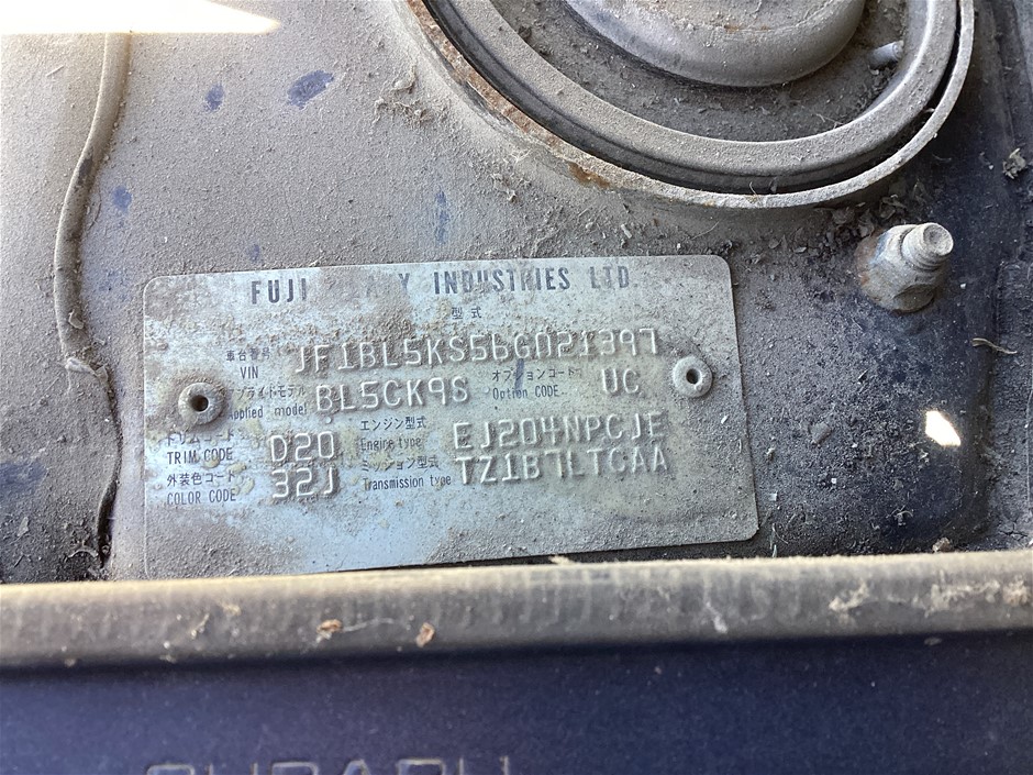 Part of Sale 2005 Subaru Liberty 2.0i B4 Automatic Sedan