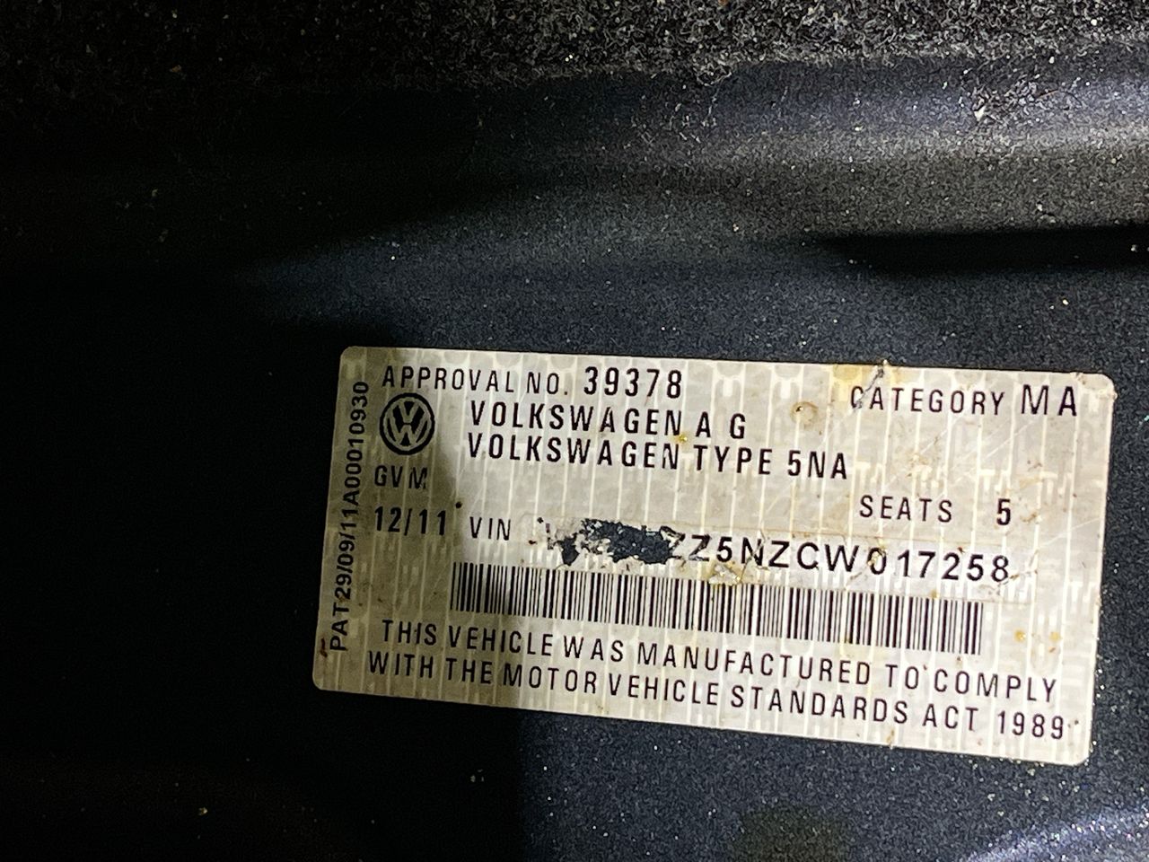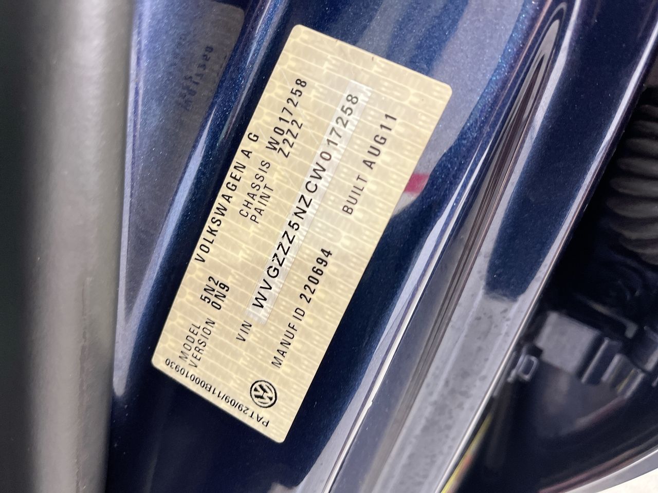 (SN:WVGZZZ5NZCW017258) (135666-1)