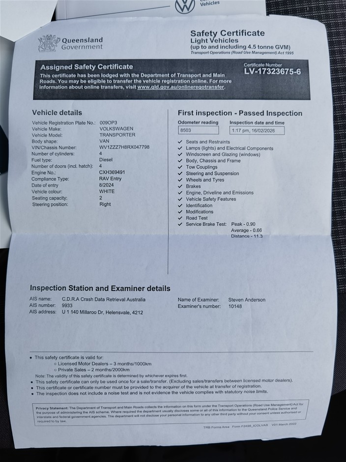 Please note: this vehicle is listed on the Written Off Vehicle Register. Details of the status can be found below. Please refer to your relevant state based authority to determine whether this vehicle will require inspection or will be able to be registered based on the recorded WOVR status.