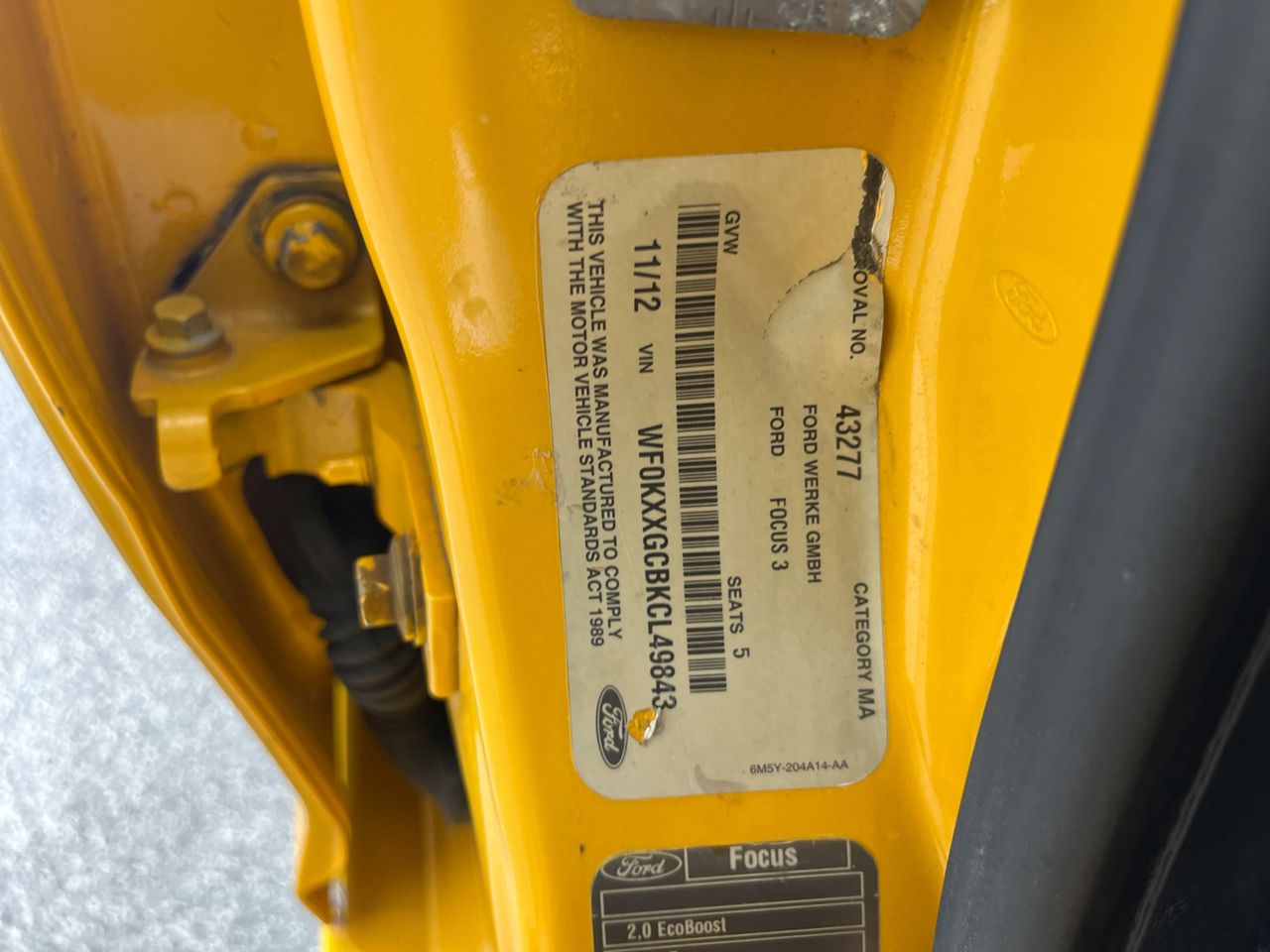 • VIN: WF0KXXGCBKCL49843