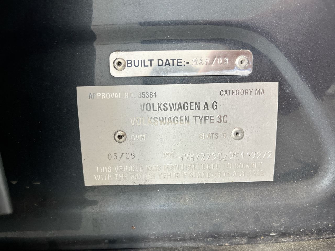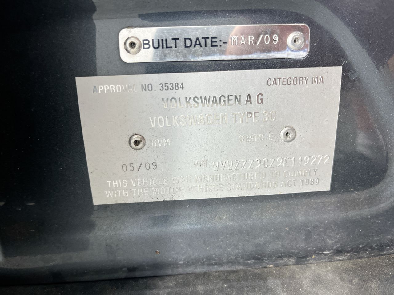 • VIN: WVWZZZ3CZ9E119272
