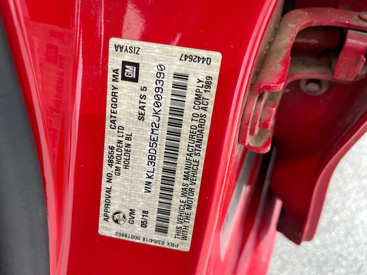 • VIN: KL3BD5EM2JK009390