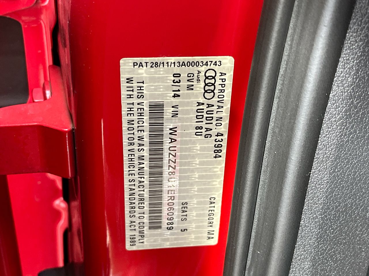 • VIN: WAUZZZ8U1ER060989