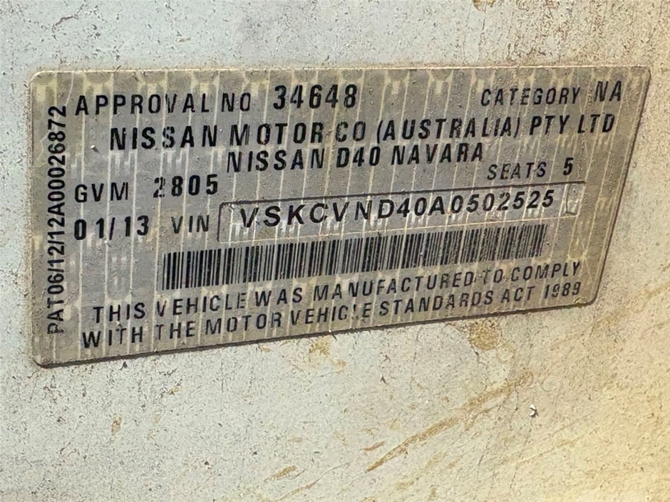 Part of Sale 2012 Nissan Navara 4X4 ST D40 Turbo Diesel Manual Dual Cab