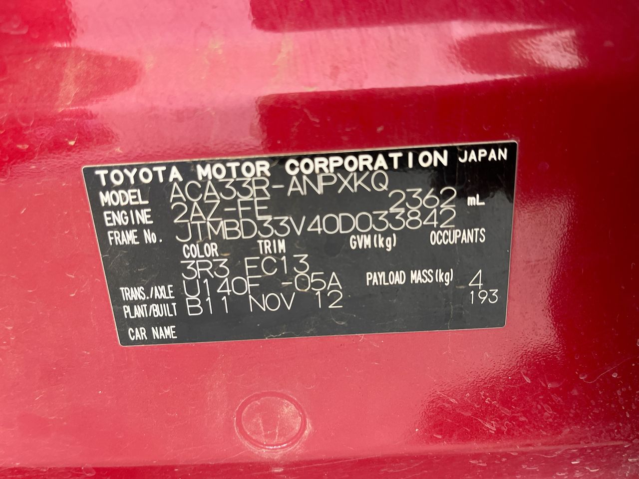 | Part of Sale | 2012 Toyota Rav 4 CV ACA33R Automatic Wagon | ||||||||||||||