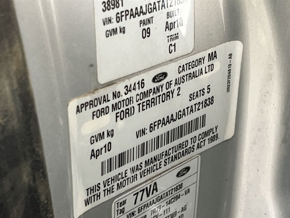 Part of Sale 2010 Ford Territory TX SY II Automatic Wagon