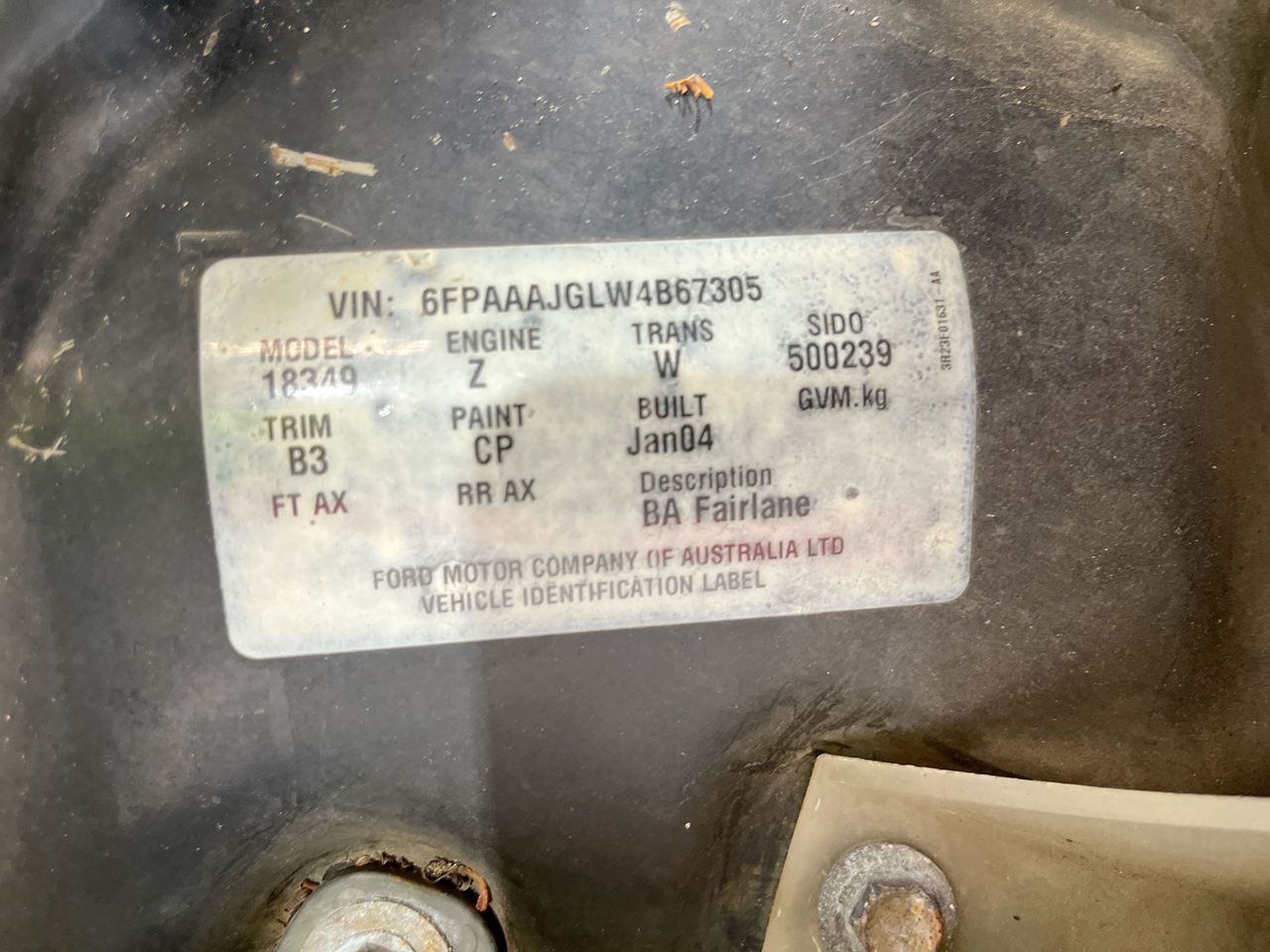 • VIN: 6FPAAAJGLW4B67305