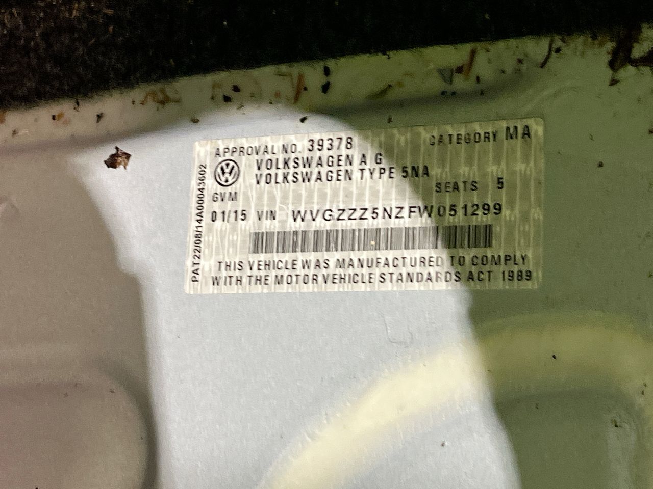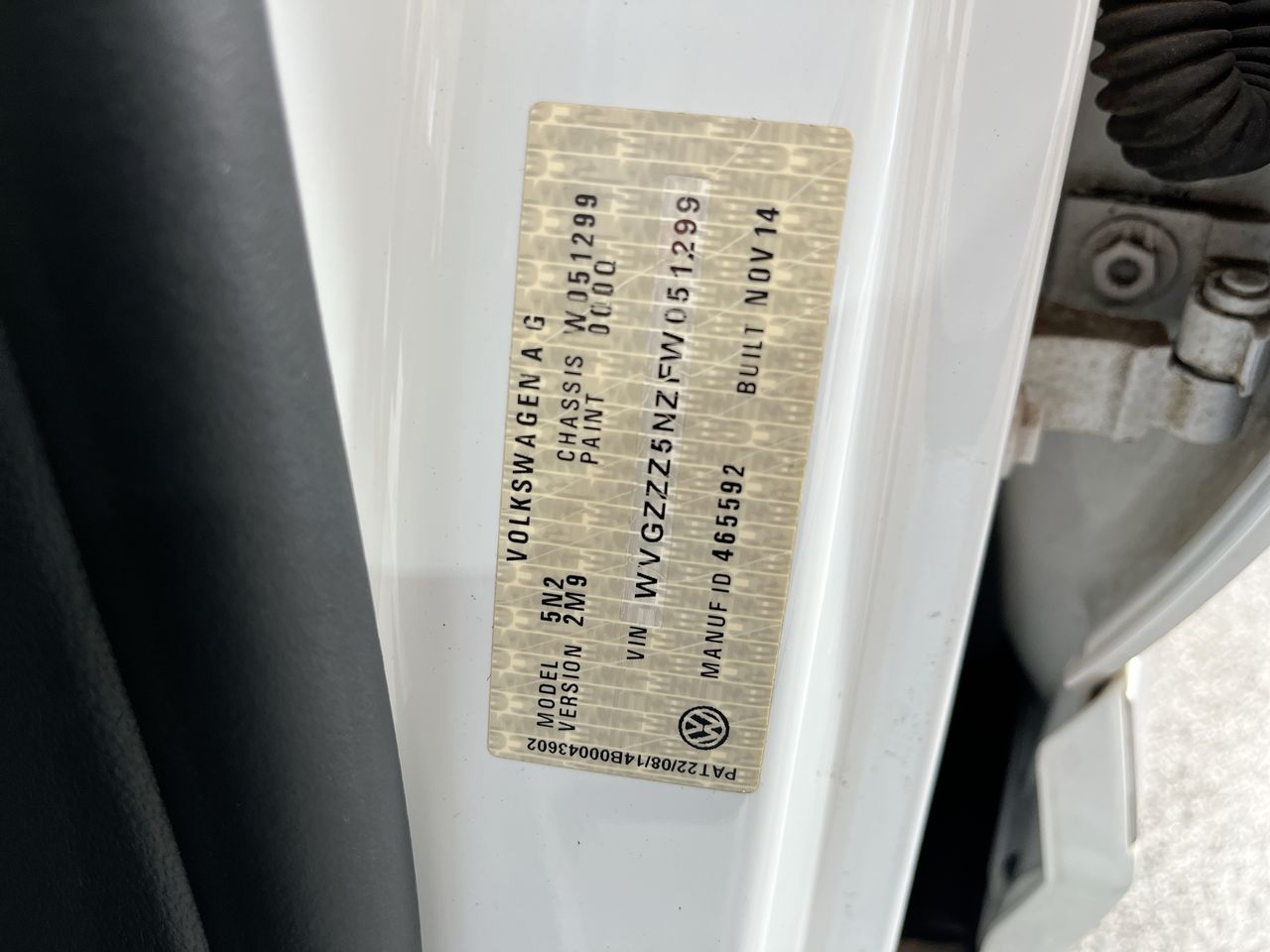 • VIN: WVGZZZ5NZFW051299