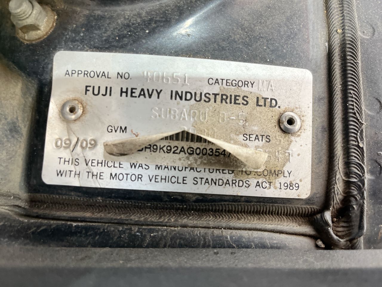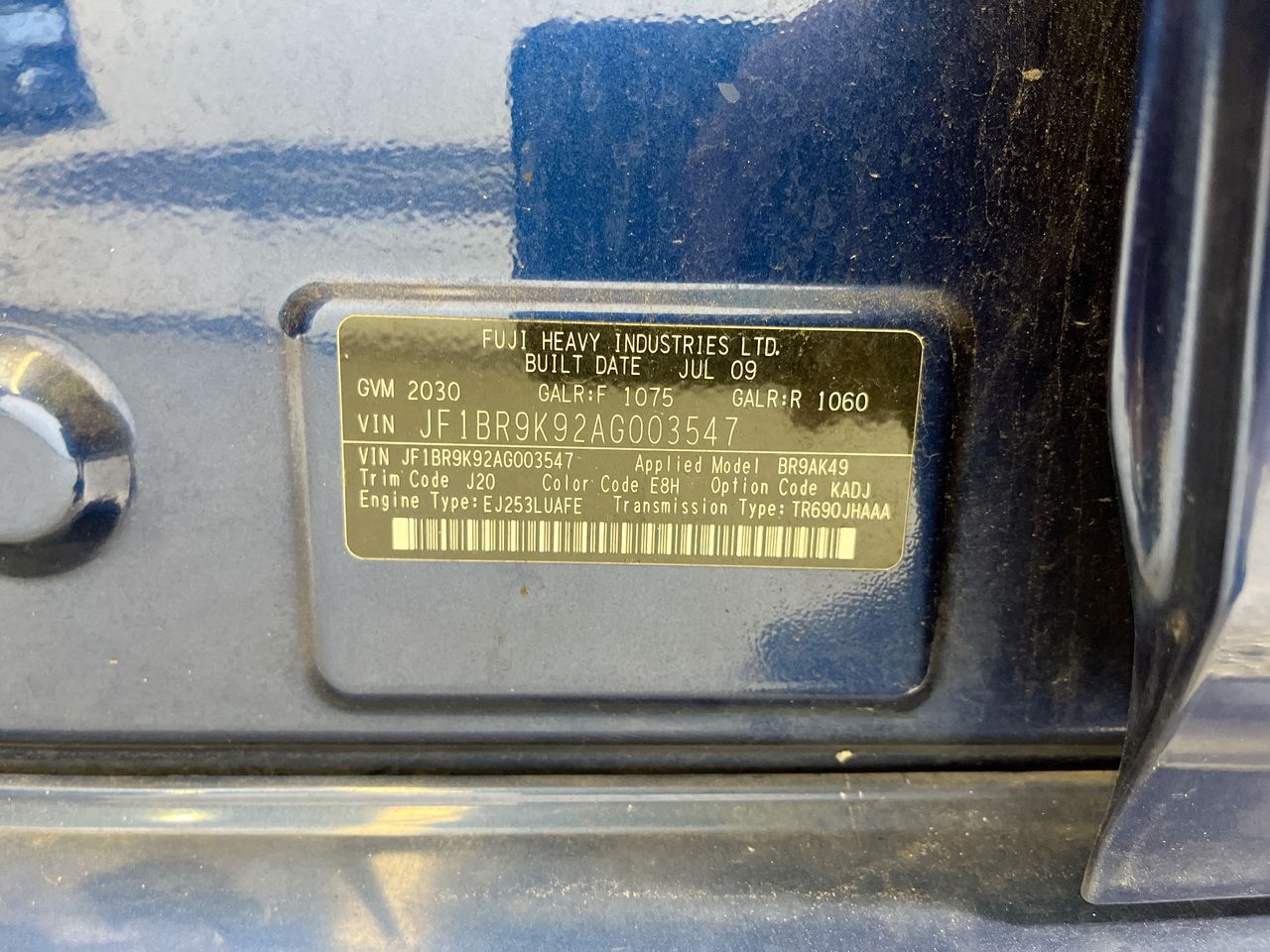 (SN:JF1BR9K92AG003547) (135845-1)