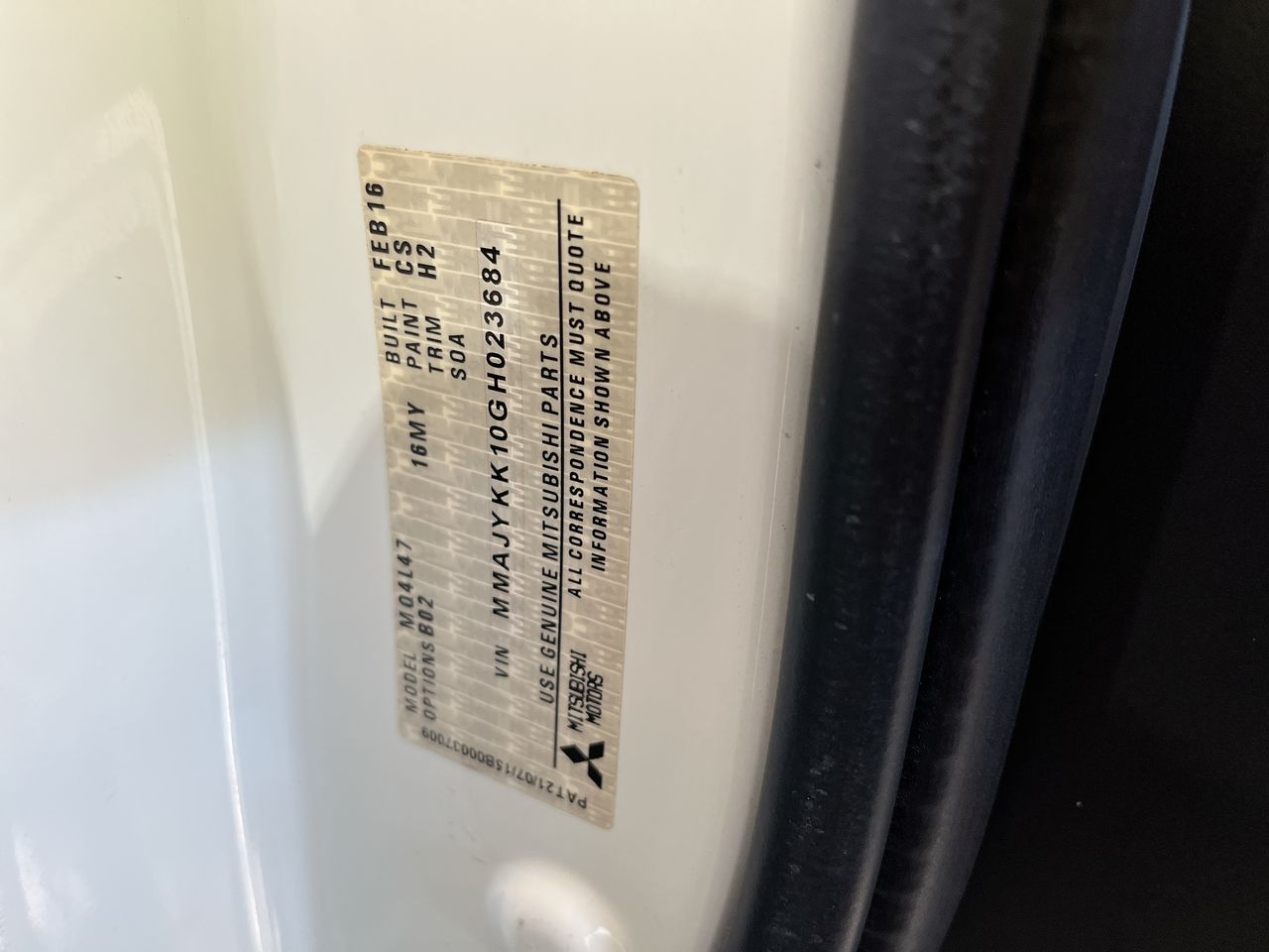 • VIN: MMAJYKK10GH023684