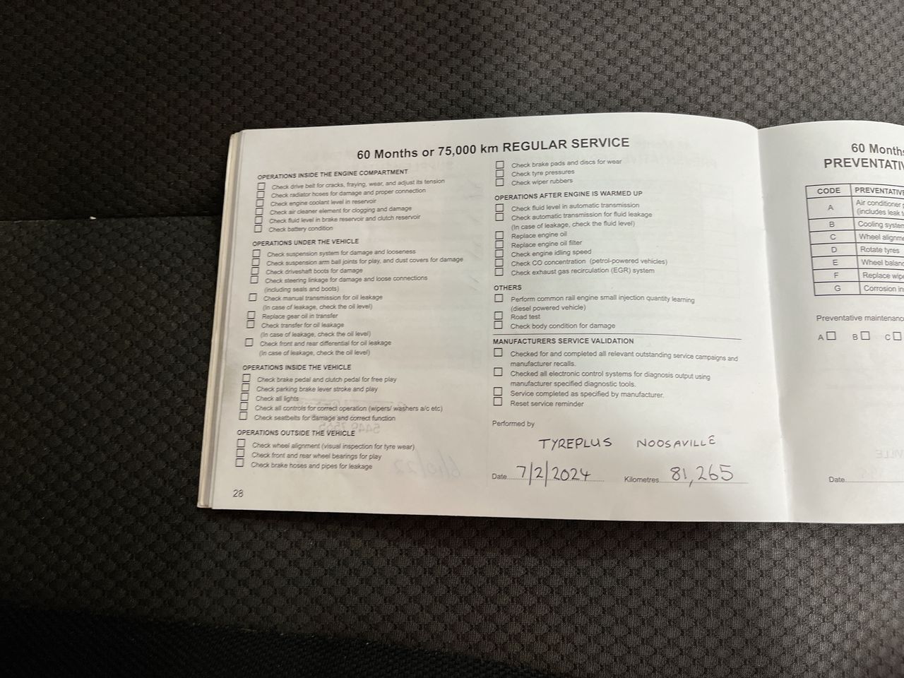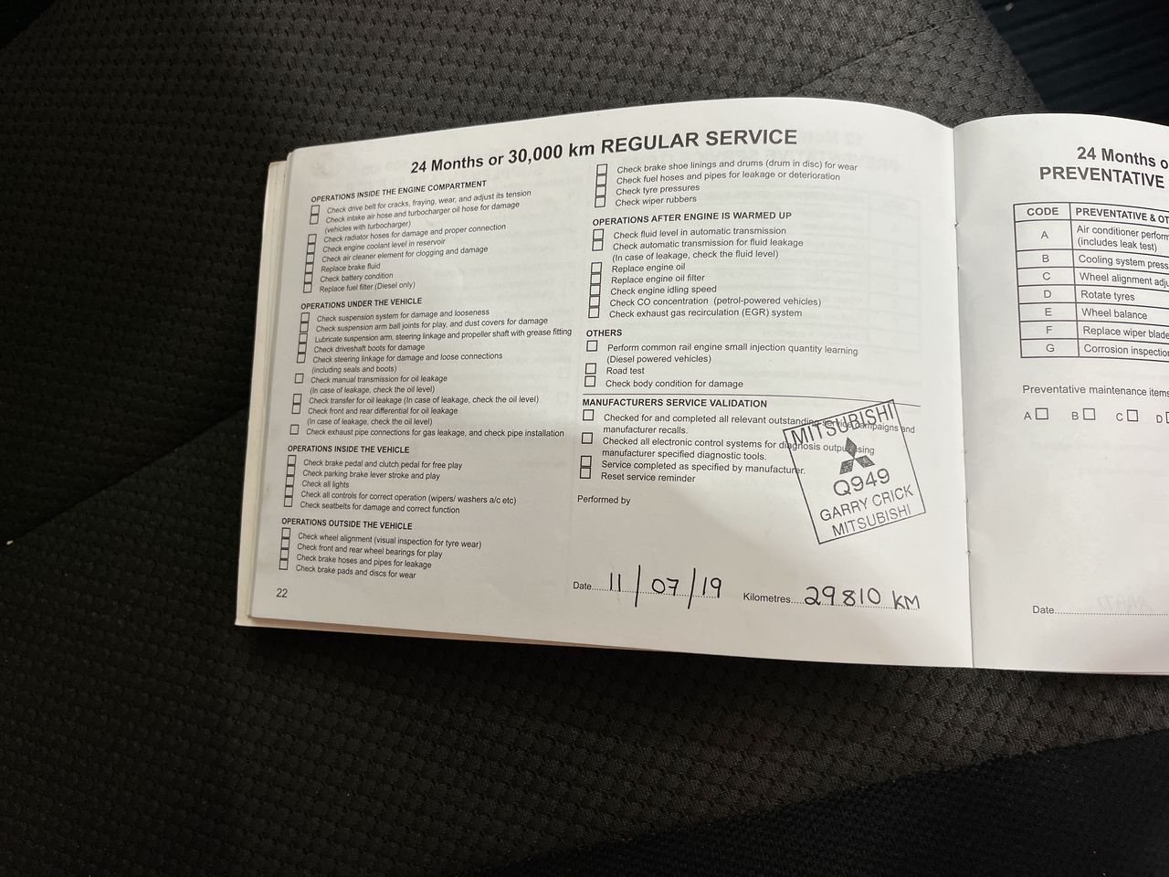 • Dents or marks on body consistent with age and kilometres.