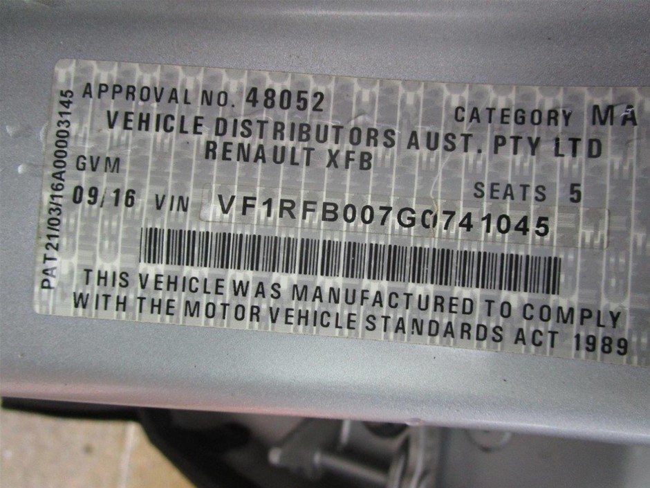 Part of Sale 2016 Renault Megane Zen FWD Automatic - 7 Speed Hatchback