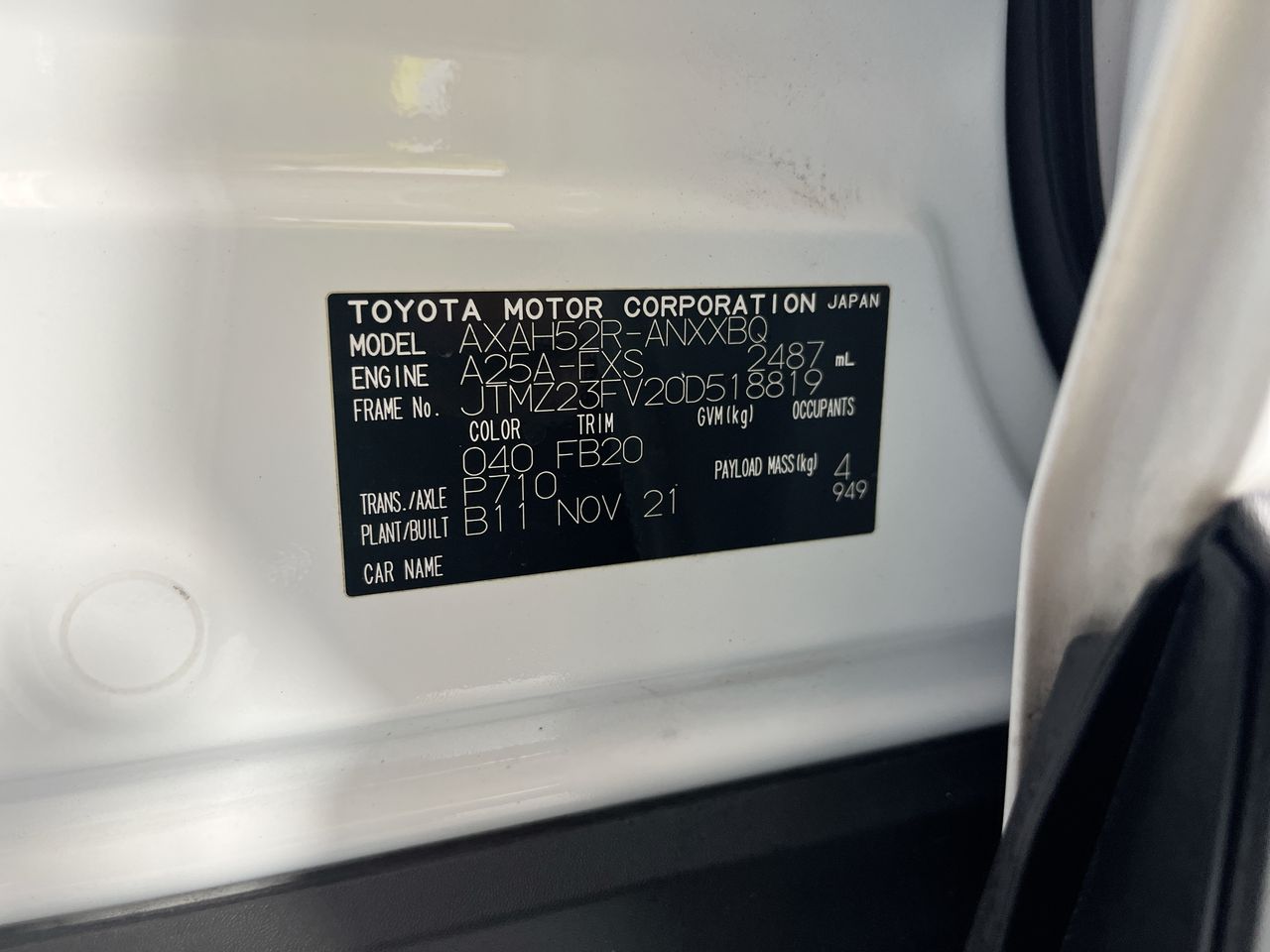 (SN:JTMZ23FV20D518819) (131460-1740)